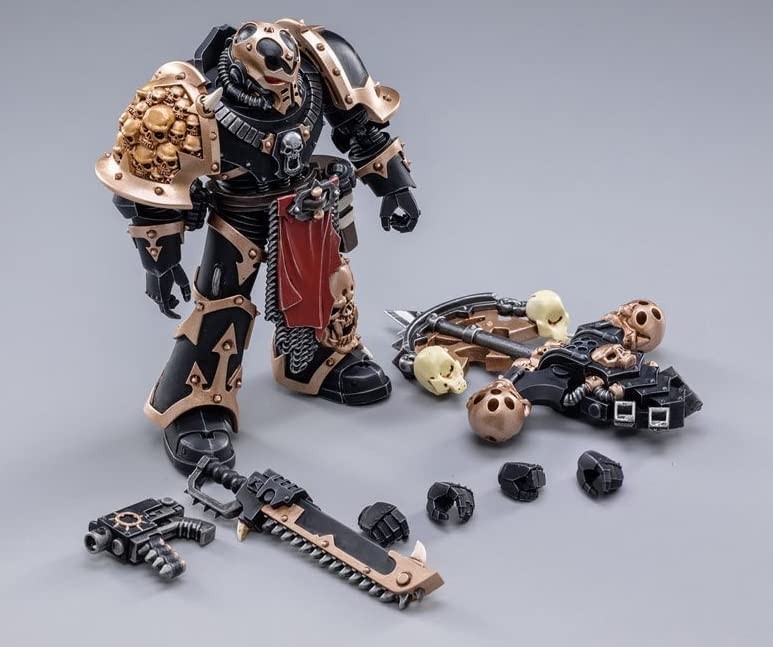 Ni si quiera los Marines Espaciales están a salvo de la atracción del Caos… Esta figura articulada de JoyToy es un Marine Espacial del Caos D-04. Complementando sus dotes genéticas con oscuros hechizos, estos valerosos guerreros se convirtieron en fuerzas de la oscuridad y ahora son el núcleo de cualquier ejército del Caos. La figura con licencia oficial de Warhammer 40.000 mide 12 cms e incluye varios accesorios geniales como pistola bolter, espada sierra, manos intercambiables y una mochila generador de energía. Está detallada al extremo. Colócala en tu colección espacial y lidera a las hordas del Caos en su cruzada a través del universo.