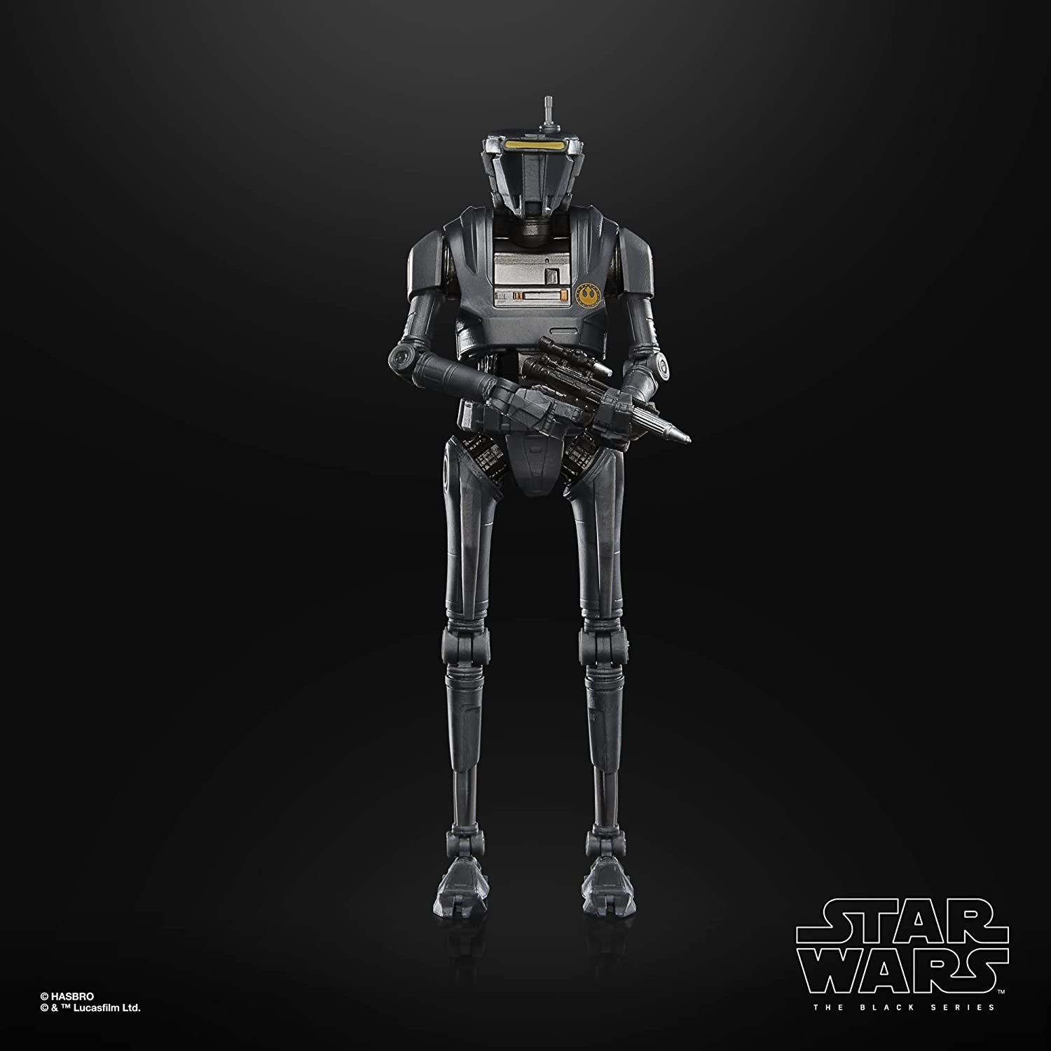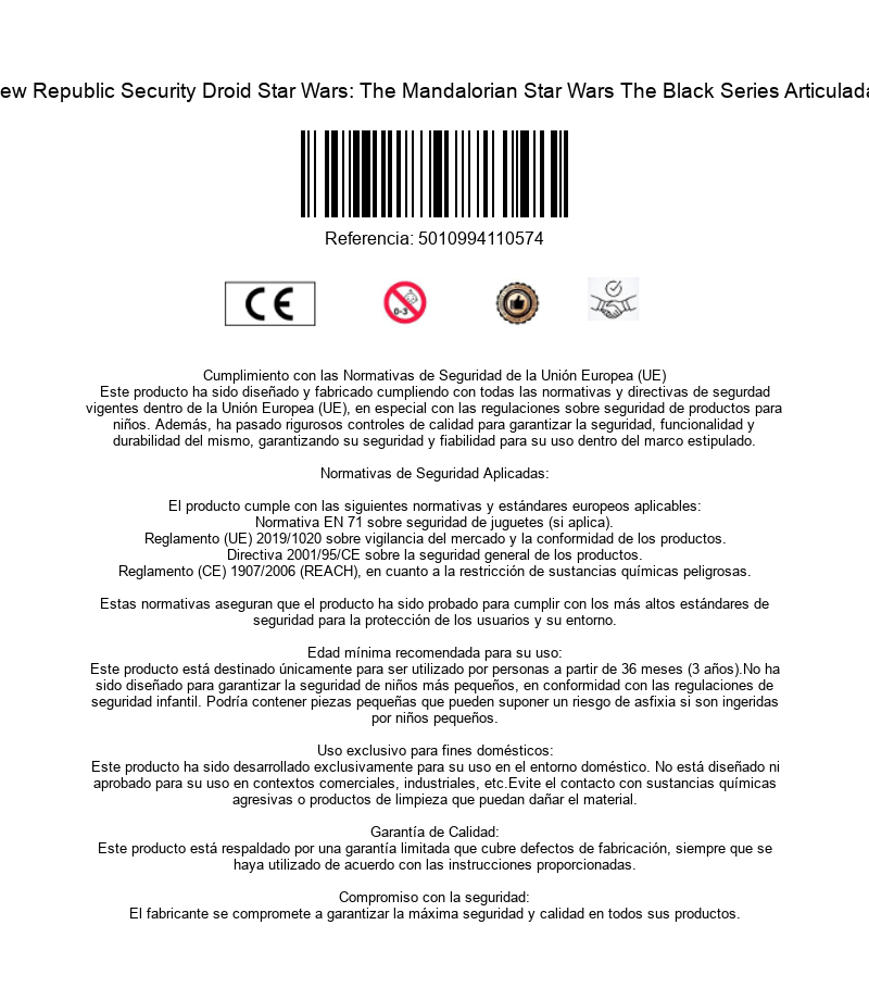 De la línea Black Series de Hasbro nos llega un androide recién salido de la serie más importante de Disney +: "The Mandalorian". Viene en su caja negra característica de la colección con ventana transparente. La figura articulada del New Republic Security Droid mide 15 cms e incluye un bláster láser para cuando debe plantar cara a los cazarrecompensas que pretenden liberar a uno de los suyos de una nave prisión. Está hecho de PVC de gran calidad que ha sido esculpido respetando todos los detalles de la carcasa del personaje. No dejes que tus figuras de acción escapen de sus blísters y mantén el órden en tus estanterías con este androide leal a tu causa.