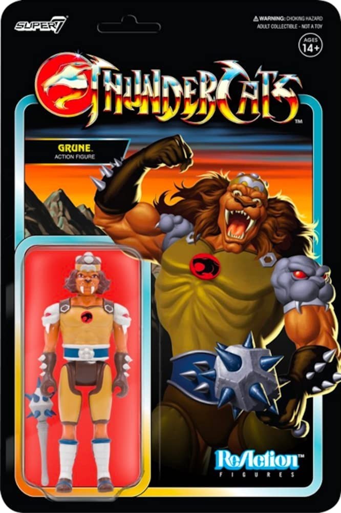 Grune el Destructor es un tigre dientes de sable con forma antropomorfa. El poderoso felino formaba parte de los Thundercats hasta que el hambre de poder y la avaricia le volvieron en uno de sus peores enemigos. La marca Reaction Figures de Super7 está creando una serie de figurones articulados exclusivos de los Thundercats que vienen en un blíster negro coleccionable. Este poderoso guerrero está hecho de PVC y viene con una maza con pinchos, arma con la que es un rival temible para sus antiguos compañeros, los felinos protagonistas de la serie de CBS. Mide 10 cms, de modo que está a la misma escala que el resto de figuras de los héroes y villanos de esta saga fantástica. Hazte con todos y lleva la emoción y la acción de los Thundercats desde la pequeña pantalla hasta tu casa.