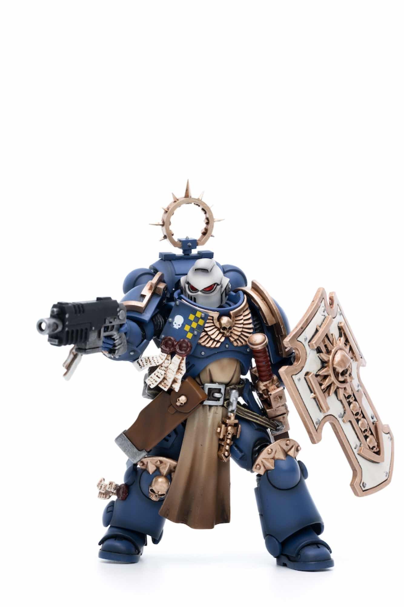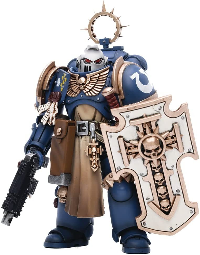 ¿Tú también pintaste estas famosas figuras en miniatura?, pues ahora tienes la oportunidad de hacerte con un marine de altura un poco más amenazadora, 12 cms. Los Marines Espaciales del universo Warhammer 40.000 son una rotunda fuerza de élite capaz de adaptarse a cualquier situación o enemigo. Estos campeones del Imperio están protegidos por sus impenetrables e imponentes armaduras. La figura del Bladeguard Veteran 02 incluye escudo, espada de energía, bolter, casco, aura, manos alternativas, cartucheras, reliquias, granada y mochila generador de enrgía. Disfruta colocándola en distintas poses de acción gracias a sus articulaciones y vuelve a meterte en el mundo de Games Workshop gracias a JoyToy. ¡Marines, al ataque!