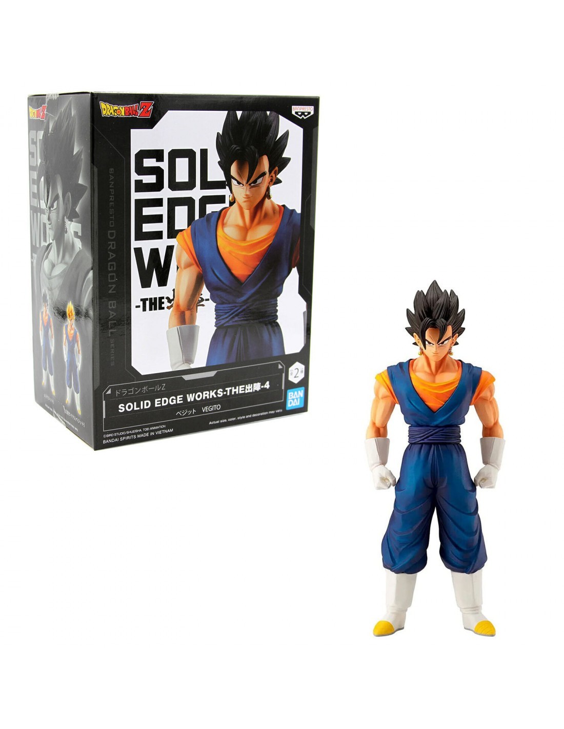 Vegito es la fusión Pothala de Goku y Vegeta que apareció por primera vez en Dragon Ball Z para enfrentarse a Majin Buu. Más tarde, en Dragon Ball Super se enfrentó a Zamasu fusionado, resultado de la unión entre Goku Black y Zamasu. La estatua de 17 cms de Vegito está hecha de PVC de gran calidad que ha sido esculpido detallando cada arruga del uniforme de batalla (azul y naranja) del guerrero. Tiene su pelo negro en punta e incluye una peana para su exposición junto a las otras figuras de la colección Solid Edge Works del anime Dragon Ball Z. Banpresto de Bandai sigue siendo la marca de referencia absoluta para los fans y los coleccionistas de figuras basadas en el universo Dragon Ball creado por Akira Toriyama.