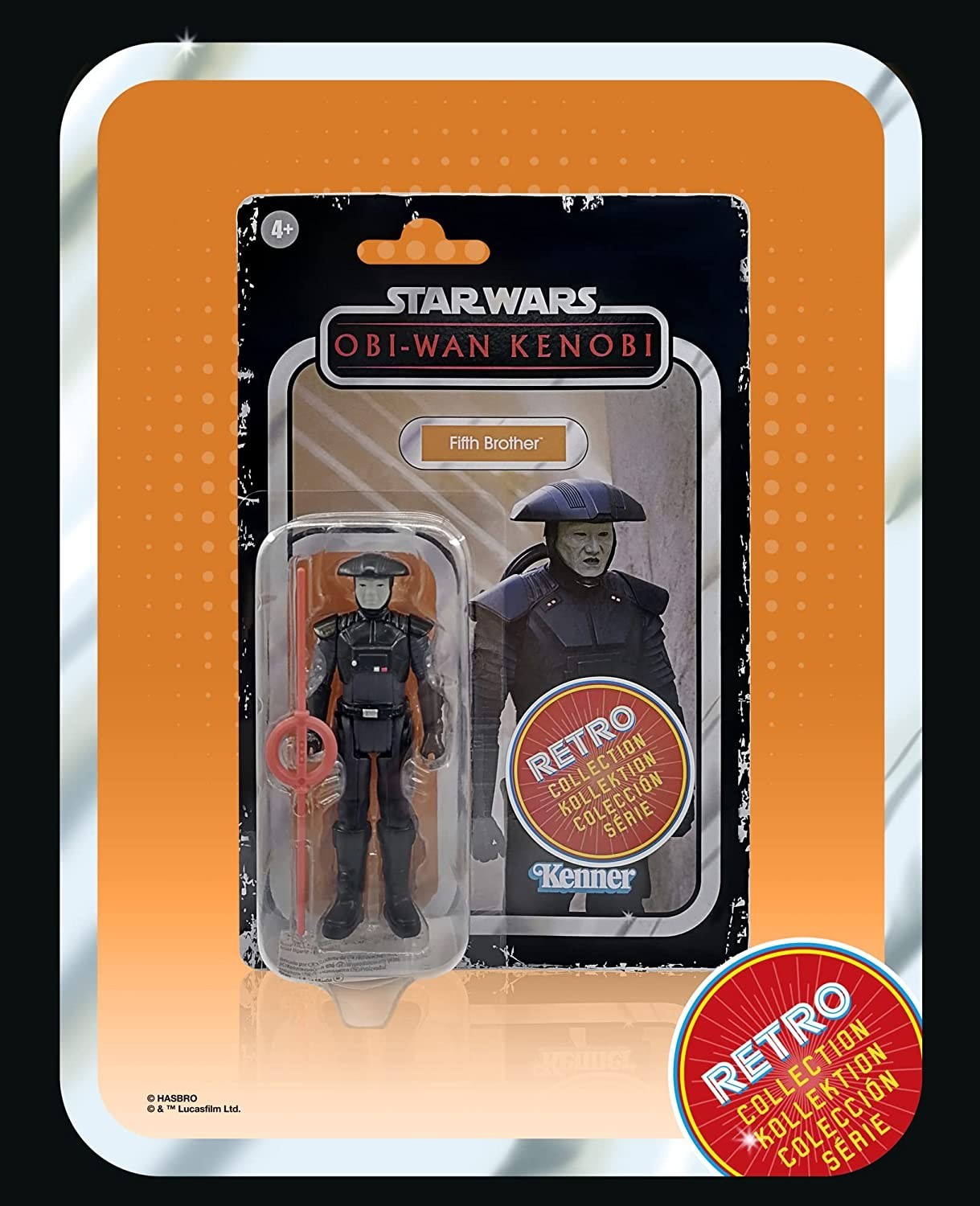 El Quinto Hermano (Fifth Brother) es un imponente inquisidor humanoide que en la serie de Disney + de Obi Wan Kenobi formaba parte de la ‘partida de caza’ en busca del Jedi protector de Leia. Interpretado en la serie por el actor Sung Kang, este personaje llega a tu colección de figuras articuladas gracias a Hasbro y Kenner y la colección Retro. Esta línea de figuras les da un toque de otra época tanto a la figura como al clásico blíster negro, que le da un acabado desgastado para que parezca realmente de hace años. El Quinto Hermano está hecho de PVC de gran calidad, mide 10 cms e incluye su sable láser de hoja doble y hoja circular. Que empiece la cacería…