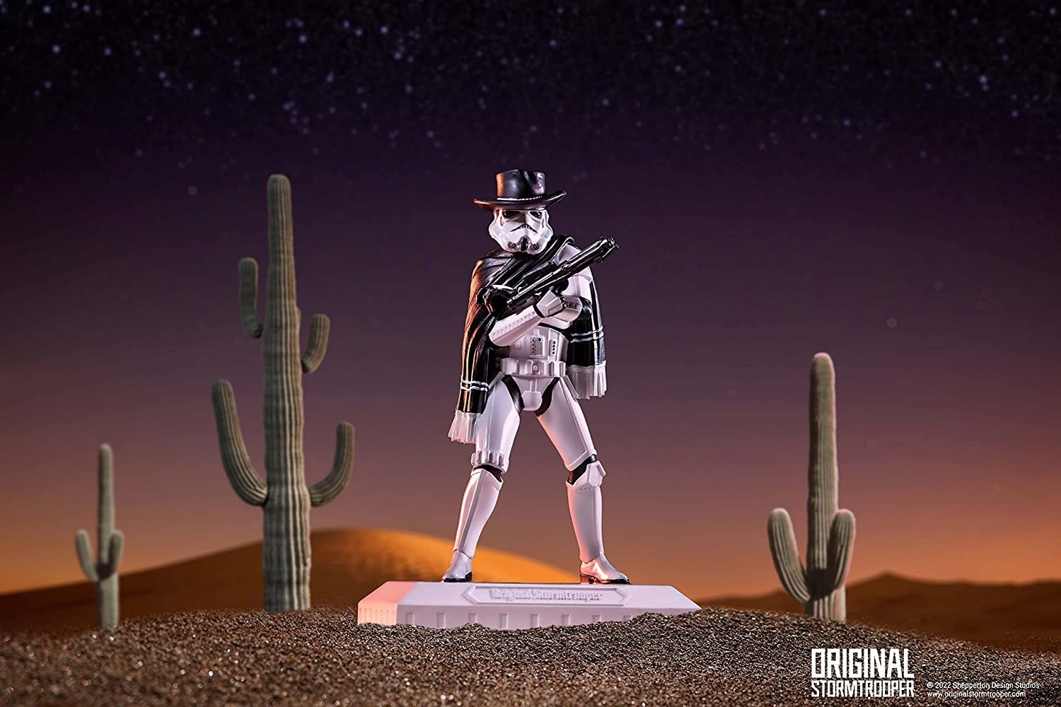 ¿Te suena Nemesis Now? Si ya tienes una figura de la marca británica eres un auténtico afortunado, y si aún no tienes ese placer… no te preocupes porque aquí te traemos una nueva oportunidad de entrar en este exclusivo club. Esta vez nos traen una simpática estatua con peana de exposición. Se trata de un Stormtrooper que además de su icónica armadura blanca lleva un poncho y un sombrero inspirados en el aspecto de Clint Eastwood en la película “El Bueno, el Feo y el Malo” dirigida por Sergio Leone. Si eres un fan del ‘spaghetti western’ y de Star Wars, con esta figura de resina de gran calidad que mide 18 cms tienes la oportunidad de juntar ambas pasiones en un único e icónico objeto de coleccionista.