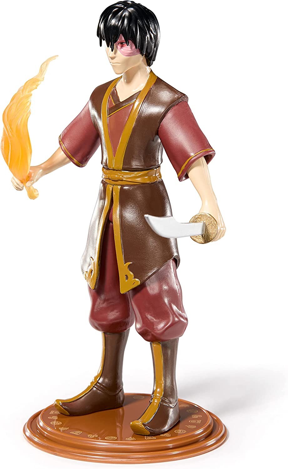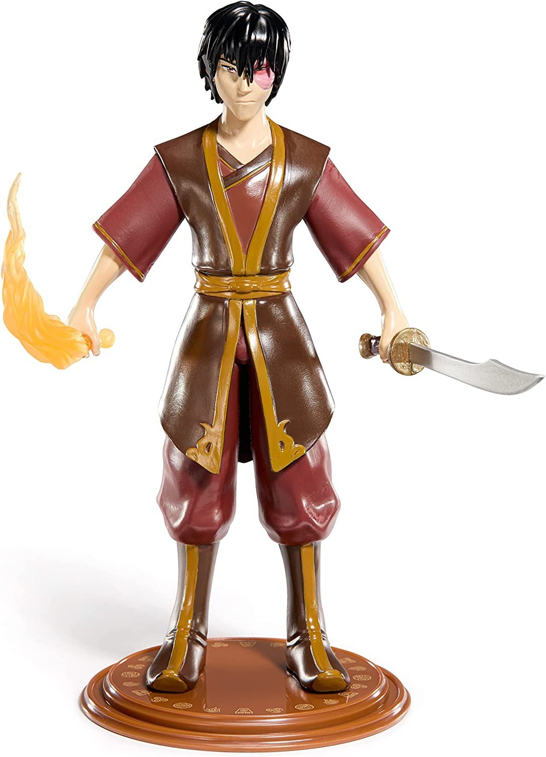 Zuko es el joven príncipe de la Nación del Fuego y Maestro del Fuego. Su única misión, y con la que está obsesionado, es capturar a Aang, el último Avatar, para que así su padre, el Señor del Fuego Otai lo acepte de regreso. The Noble Collection nos trae la figura flexible de Zuko dentro de la línea Bendyfigs. Mide unos 18 cms y está hecho de PVC de gran calidad que ha sido pintado con todo lujo de detalle para asemejarse lo más posible al personaje de la serie animada de Nickelodeon. La figura de Zuko incluye una espada, un efecto de bola de fuego y una peana de exposición para que lo coloques al lado del resto de personajes de la colección: Aang, Katara y Toph.