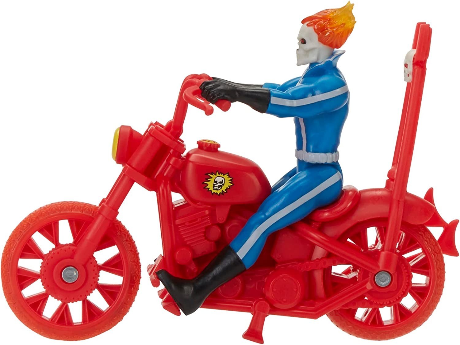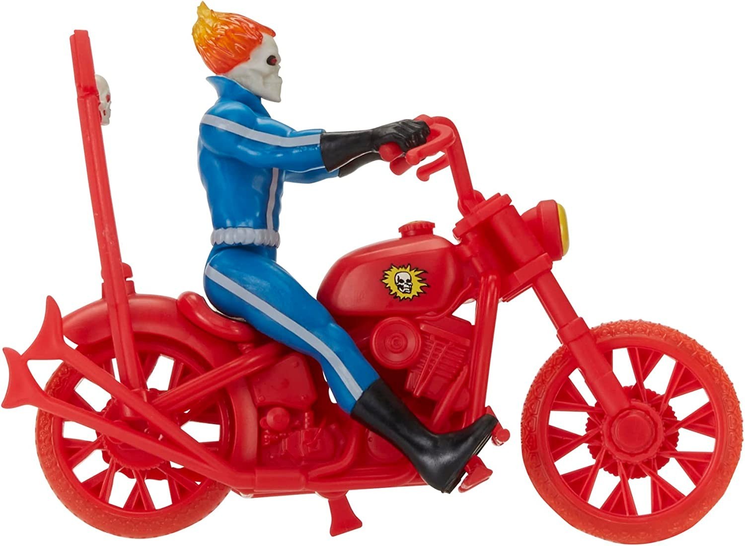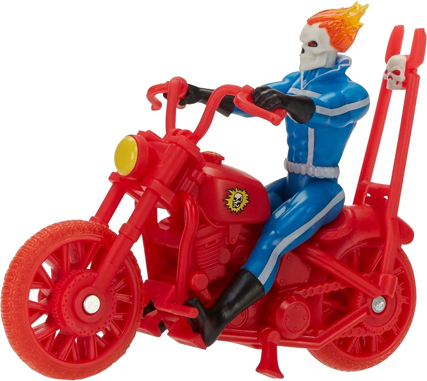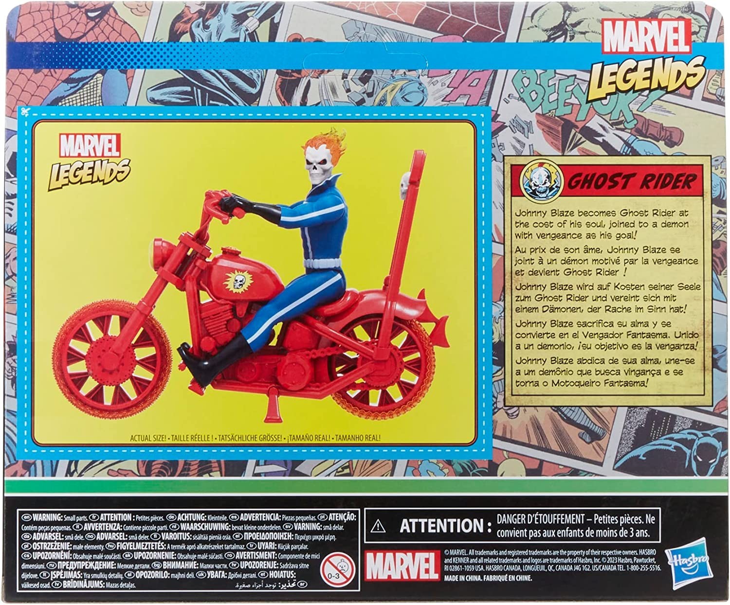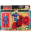 Ghost Rider, llamado en español el Motorista Fantasma, es uno de los antihéroes más queridos por los fans de Marvel. El primer motorista, Johnny Blaze, le entregó su alma a Satán a cambio de salvar el alma de su padre. Ha sido llevado a la gran pantalla en un par de ocasiones y habrá más por venir… La figura articulada que te traemos aquí mide unos 9,5 cms y pertenece a la exclusiva línea Marvel Legends Retro de Hasbro y Kenner. Viene en una espectacular caja temática con ilustraciones retro a todo color del personaje en los cómics clásicos en los que salía. Viene una bio del personaje en la parte posterior y la figura incluye una impresionante motocicleta de color rojo para que montes a Johnny en ella y empiece su epopeya. Está hecho de PVC el diseño tanto de la moto como de la figura recrea el diseño original del personaje con su mono de motero en color azul y blanco. ¡Acelera a la aventura!