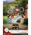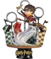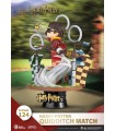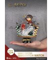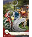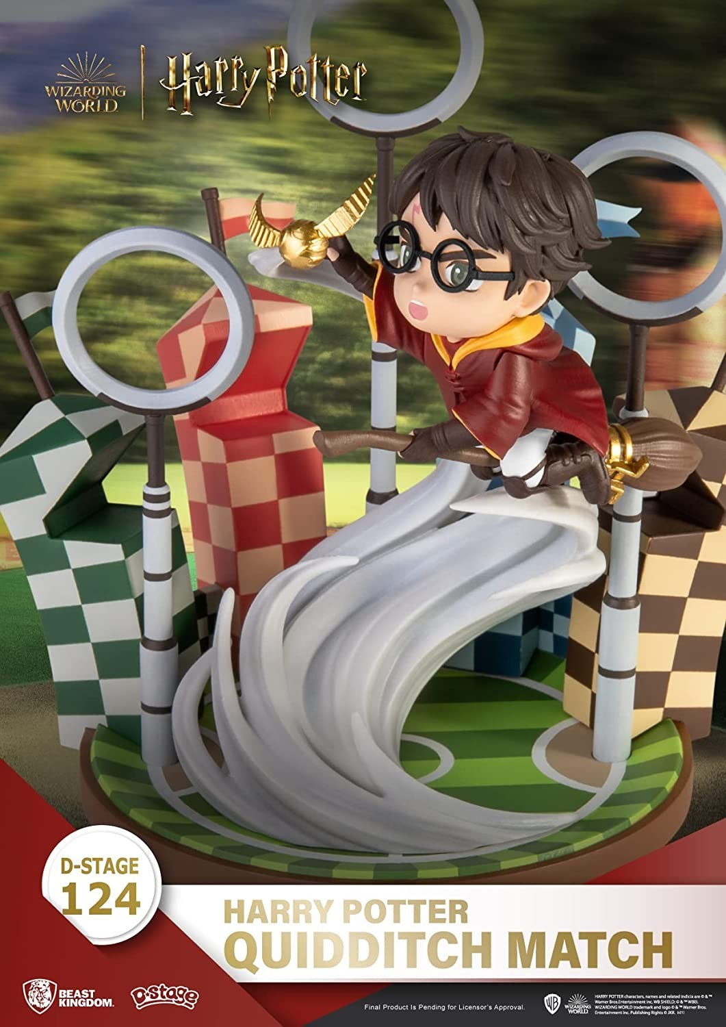 Un destello dorado en tu habitación… La línea D Stage de la prestigiosa marca especializada en réplicas y figuras, Beast Kingdom, nos trae un diorama precioso inspirado en la saga de Harry Potter. En esta espectacular pieza que viene dentro de una campana transparente, el pequeño Harry está persiguiendo la famosa Snitch dorada a lomos de su escoba en uno de los épicos partidos de Quidditch de Hogwarts. El estilo del adorable diseño del estadio y del propio Harry recuerda al estilo Chibi que tan famoso se ha hecho dándole a personajes queridos una actualización que les asemeja a un dibujo animado. Viene sobre una peana de exposición que tiene el nombre del protagonista, y toda la pieza está hecha de PVC que ha sido pintado profesionalmente con un acabado sencillamente mágico. Es un producto oficial del Wizarding World que impactará a los fans de la saga creada por JK Rowling. Mide 16 cms aproximadamente.