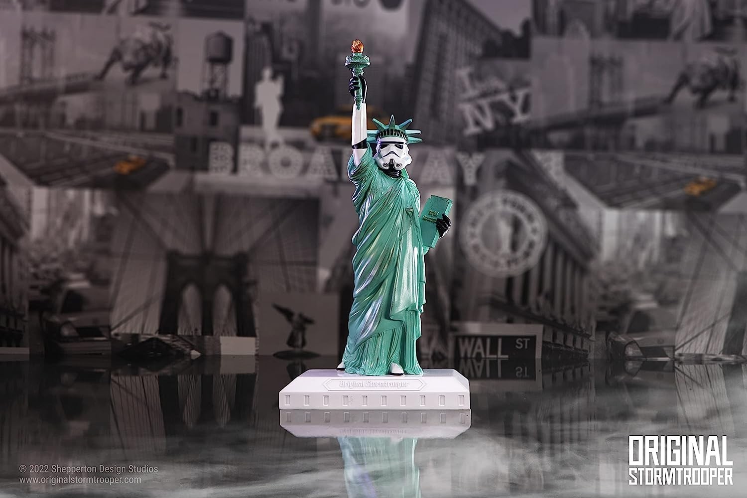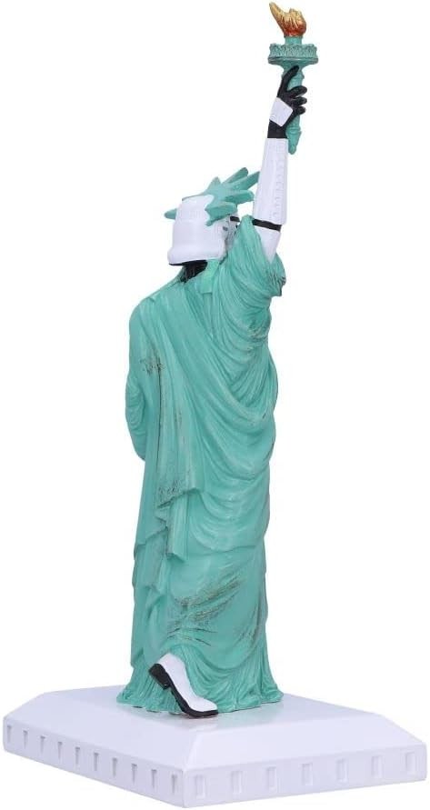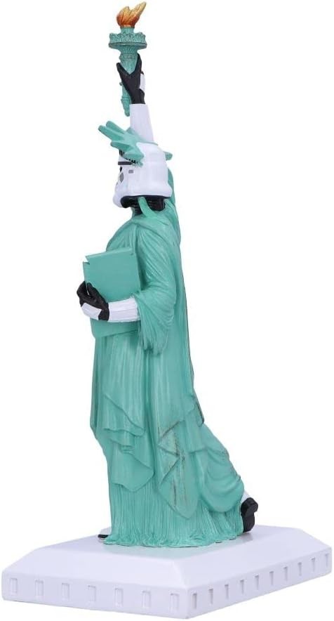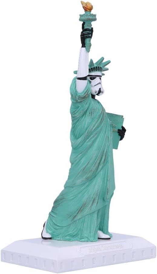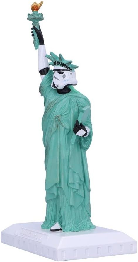 Los Stormtroopers o soldados de asalto del Imperio son de las fuerzas más polivalentes de toda la galaxia Star Wars. Si no que se lo digan a la marca Nemesis Now, que ha creado a varios de estos leales (pero de mala puntería) soldados en distintos contextos. El que aquí te traemos es un soldado imperial vestido como si fuera la mismísima Estatua de la Libertad de Nueva York. La ciudad de los rascacielos y los villanos de la Guerra de las Galaxias se unen en esta fantástica estatua hecha de resina de unos 24 cms que será una pieza fundamental y divertida para los fans del universo creado por George Lucas. What a Liberty! pertenece a la licencia oficial Original Stormtrooper, creada en los históricos estudios británicos Shepperton. Viene encima de una peana de exposición.