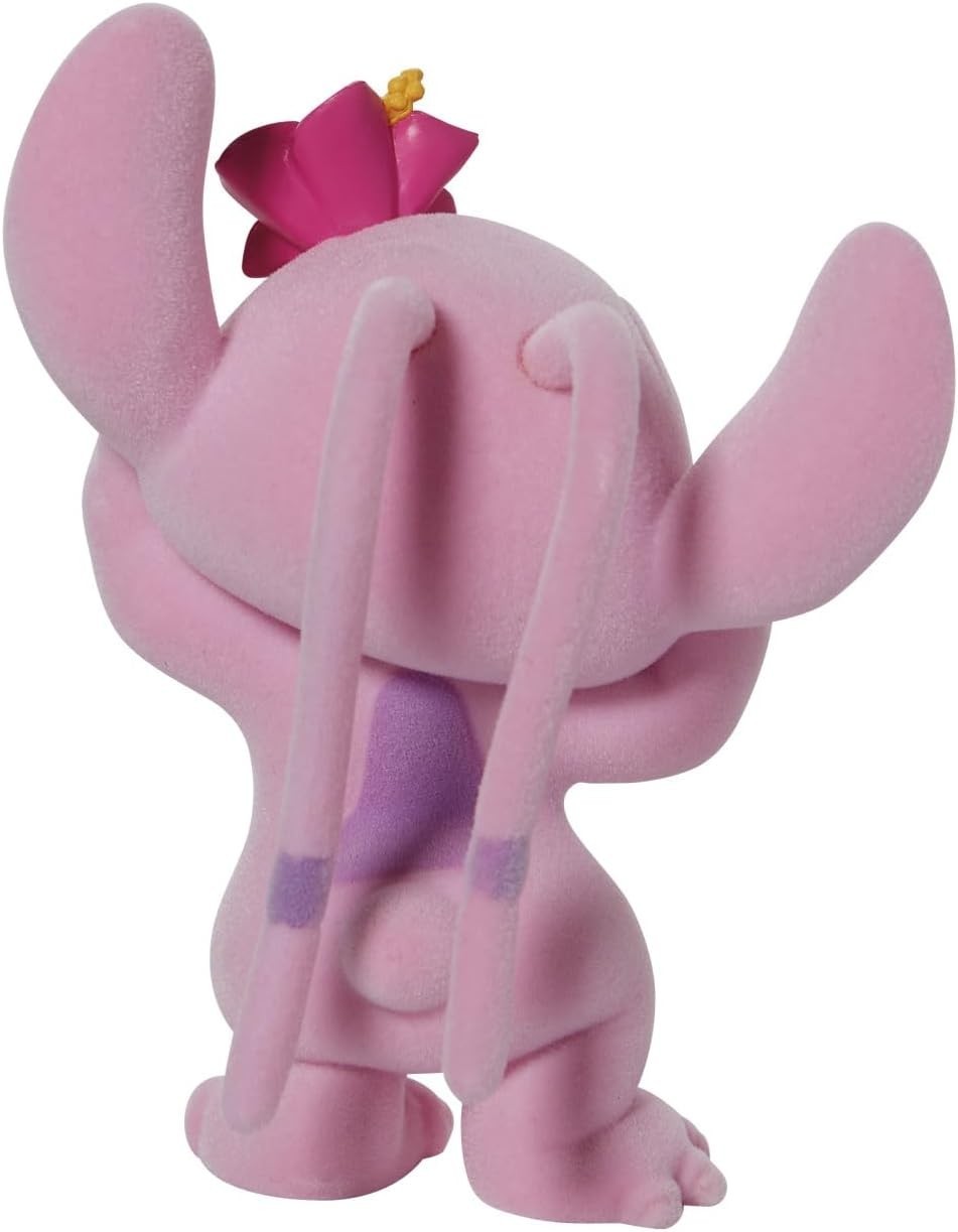 La adorable Angel es una alienígena, igual que Stitch, del que está enamorada (y él de ella) y usa su voz y su canto para volver a otros personajes con los que se cruza en malvados. La marca Enesco y Grand Jester Studio han creado la figura “flocked” de textura suave de 10 cms de altura de Angel. Llévate a casa a este personaje tan adorable de la saga de Lilo & Stitch de la productora Disney y tendrás un pedacito de magia en tu colección. Viene en una caja con ventana de exposición. Está hecha de PVC y moldeada con una atención al detalle excelsa.
