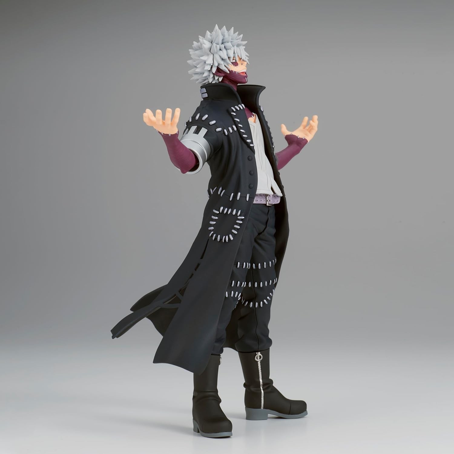 La figura de Dabi es una representación asombrosa de uno de los villanos más enigmáticos y poderosos de “My Hero Academia”. Con una altura de 20 cms y meticulosos detalles, está hecho en PVC y pertenece a la línea DX. Dabi luce su característica apariencia, con cabello gris y quemaduras en su rostro. Su expresión fría y despiadada capta su naturaleza malévola en el anime. De la figura destaca su postura desafiante con los brazos extendidos, a punto de hacer una demostración de poder. Los fanáticos de la serie disfrutarán de esta figura como una representación impresionante de un villano icónico. Es una creación de Bandai y Banpresto.