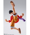 La línea SH Figuarts de One Piece ha creado una figura de acción articulada de Monkey. D Luffy basada en The Raid of Onigashima. Mide 14,5 cm y está hecha de PVC de gran calidad. Incluye tres expresiones adicionales, dos pares de manos intercambiables y pelo alternativo. Viene en una caja con ventana y fotos de la figura.