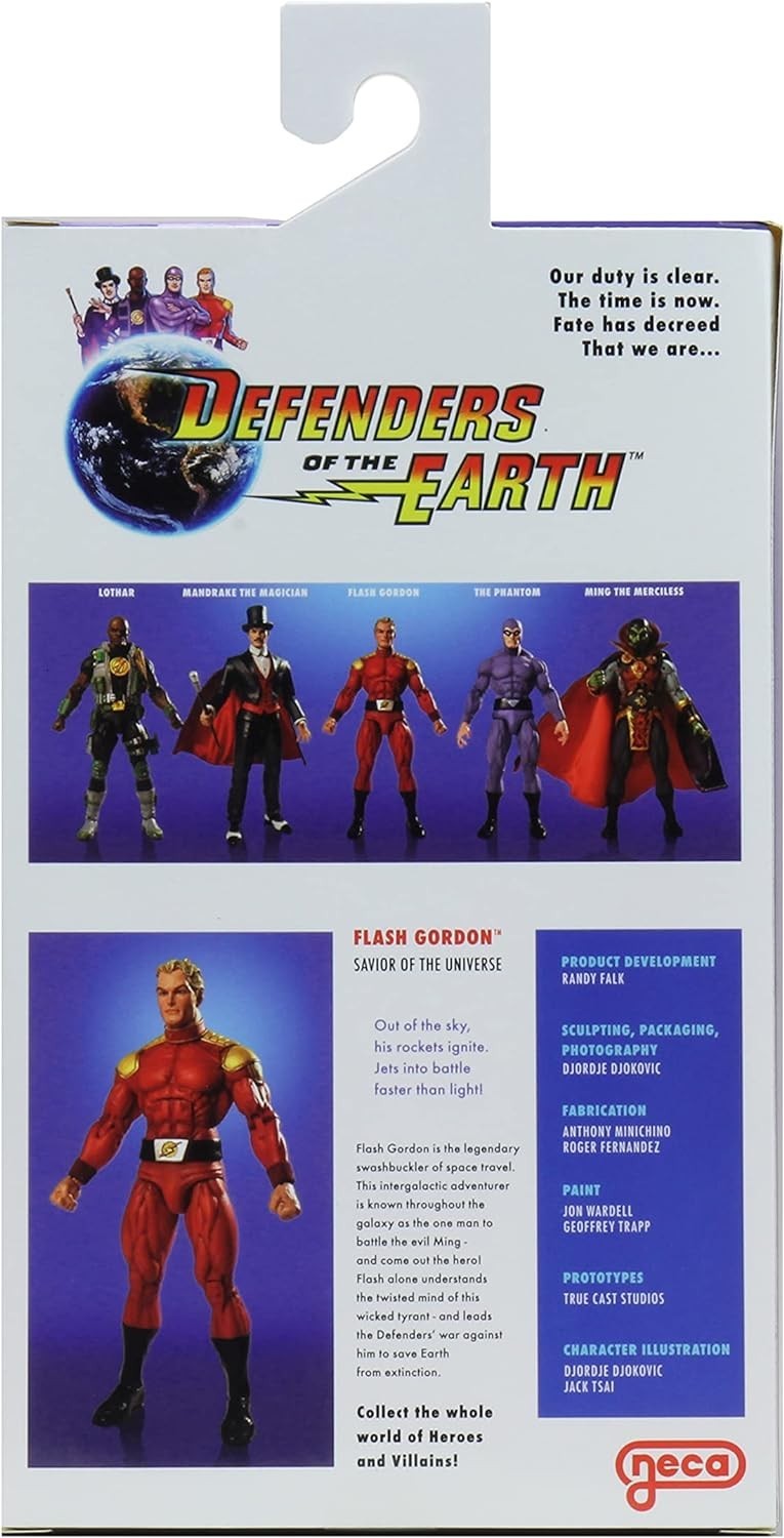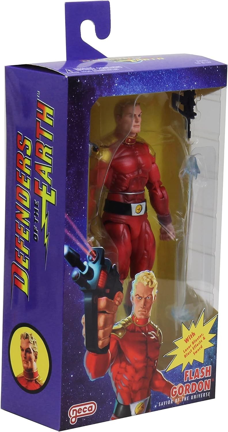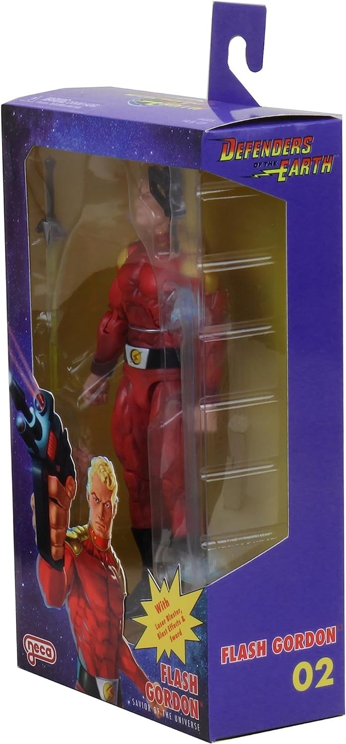 La figura de Flash Gordon de "Defenders of the Earth" es un tesoro para los aficionados de esta serie clásica. Con 18 cm de altura, la figura representa a Flash Gordon en todo su esplendor aventurero, con detalles precisos en su traje y expresión facial. Incluye accesorios como espada, pistola y efecto de disparo. La calidad de la escultura y la pintura destaca con su apariencia icónica en color rojo, rindiendo homenaje al personaje que ha cautivado a generaciones enteras de fanáticos de la fantasía espacial. Esta figura es una pieza de colección imprescindible que captura la nostalgia y la emoción de "Defenders of the Earth". Ha sido hecha por Neca y viene en una caja con ventana absolutamente retro. Hazte con todas las figuras de la colección y tendrás una alineación inmejorable para salvar proteger el universo.