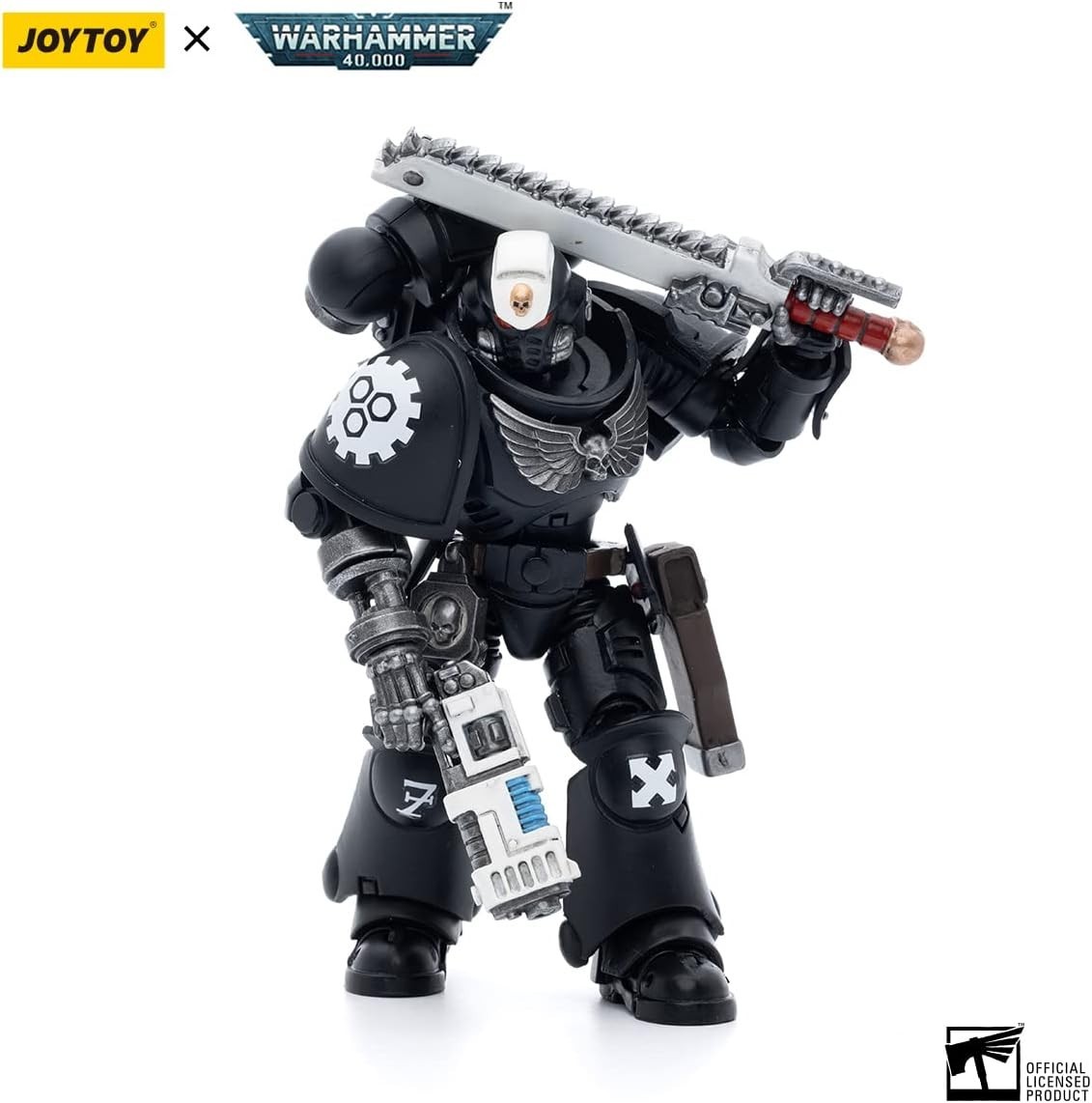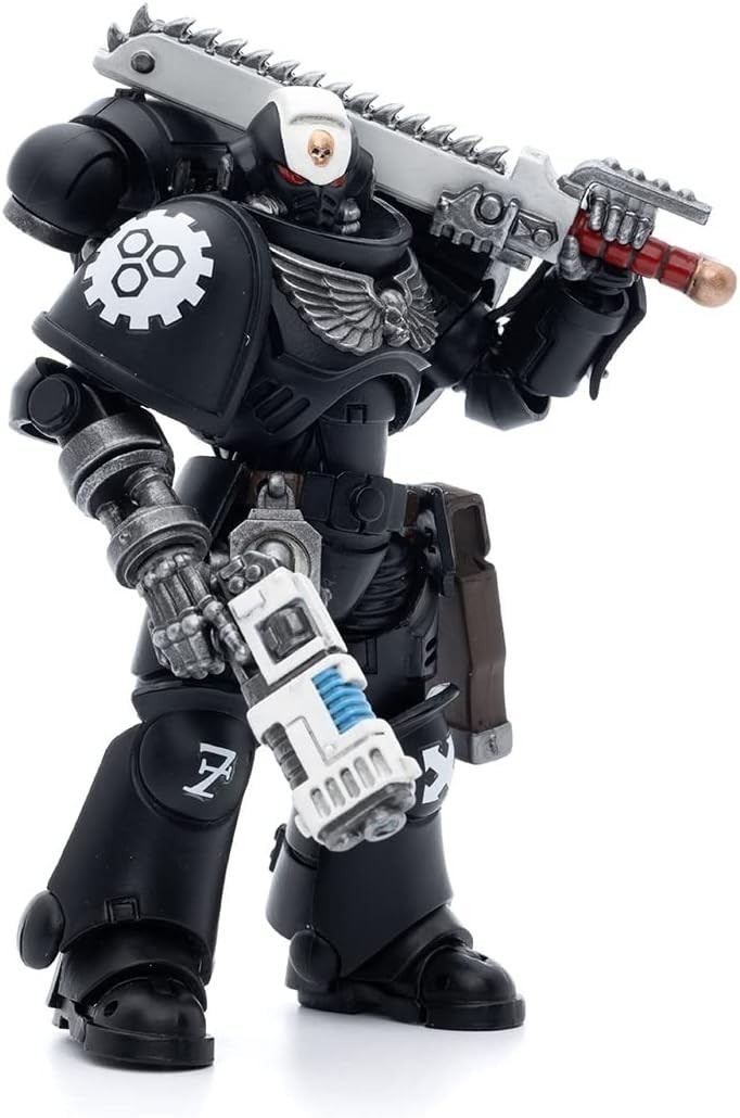 Directo desde el universo de fantasía y épica y épica galáctica de Warhammer 40.000, nos llega este figurón de 12 cms del Iron Hands Assault Intercessors Sergeant Kalock. Incluye hasta 11 accesorios como tres manos adicionales, varios rifles, cartucheras y espada/sierra. Es un producto de licencia oficial de Warhammer 40.000 hecho por Joy Toy a escala 1/18 y hecho de PVC pintado con una atención al detalle excelsa y digna de los mejores Marines Espaciales. Que empiece la batalla…