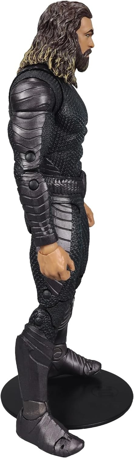 Desde las profundidades de Atlantis nos llega la figura articulada del mismísimo Aquaman llevando su traje Stealth Suit, el que usa para infiltrarse en el desierto y liberar a su hermano, Ocean Master. McFarlane se ha zambullido en las aguas del reino submarino de Atlantis para hacerse con las figuras de la película “Aquaman y el reino perdido”. Pertenece a la colección DC Multiverse y está hecha de PVC. Aquaman viene acompañado de su tridente de tres puntas, una peana de exposición y una tarjeta coleccionable del personaje. Mide 18 cms de puro poder atlante. ¡Que empiece la batalla por los océanos!