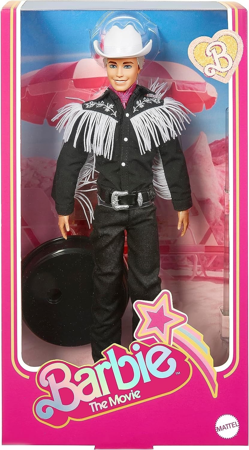 El Ken que vestía su uniforme de cowboy de color negro con flecos blancos en la película de Barbie, llega a tu colección de estas exclusivas figuras de Mattel. Viene con su sombrero blanco y pañuelo rosa en el cuello e incluye una peana de exposición y una varilla para mantener a tu pie en la postura más óptima para su exposición. Viene en una caja con ventana de exposición por si prefieres proteger a Ken de los elementos. Está articulado y mide unos 33 cms. Ryan Gosling estaría orgulloso de ver esta figura del Ken que interpretó.