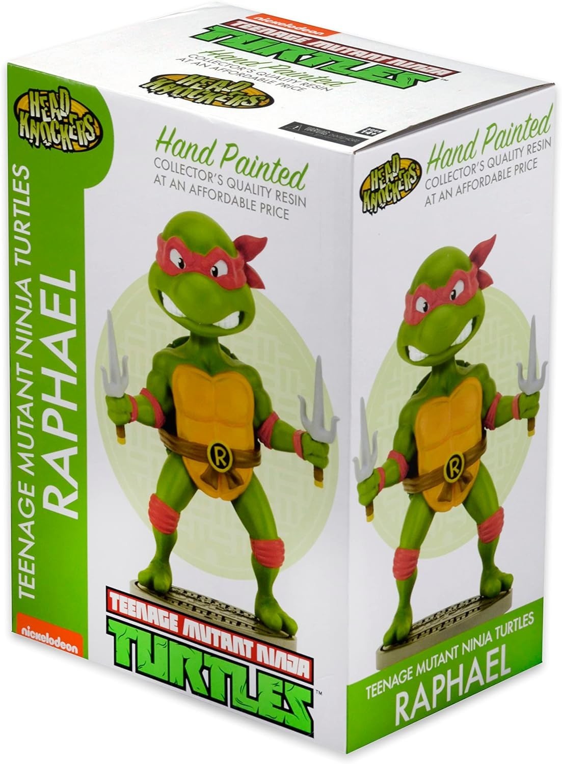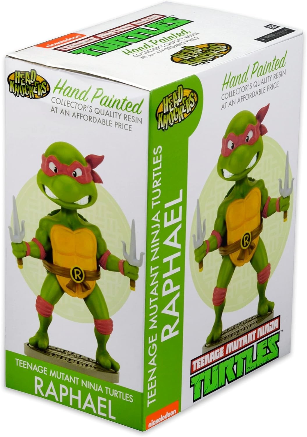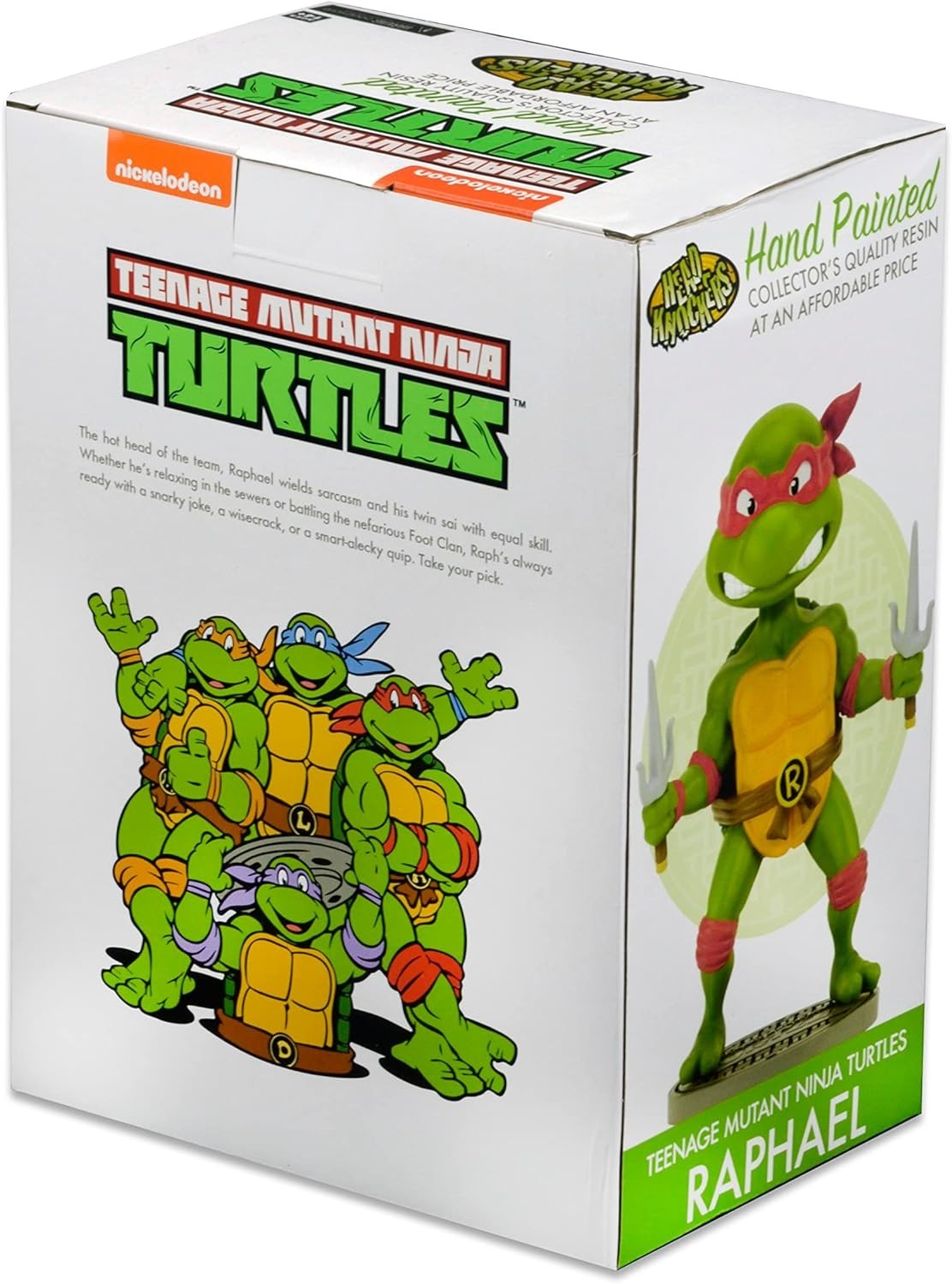 Raphael, el ninja de sais gemelos por arma y antifaz rojo, llega a tu colección de figuras con la divertidísima versión Head Knocker del personaje. Esta línea de figuras está creada por la legendaria marca Neca, que lleva años trayéndonos a los personajes más icónicos del mundo del cine y la televisión. Viene sobre una peana de exposición y está hecha de resina con calidad coleccionista. Mide unos 16,5 cms y es un artículo de licencia oficial de Nickelodeon y de las TMNT. ¿Listo para proteger la ciudad con Raphael?