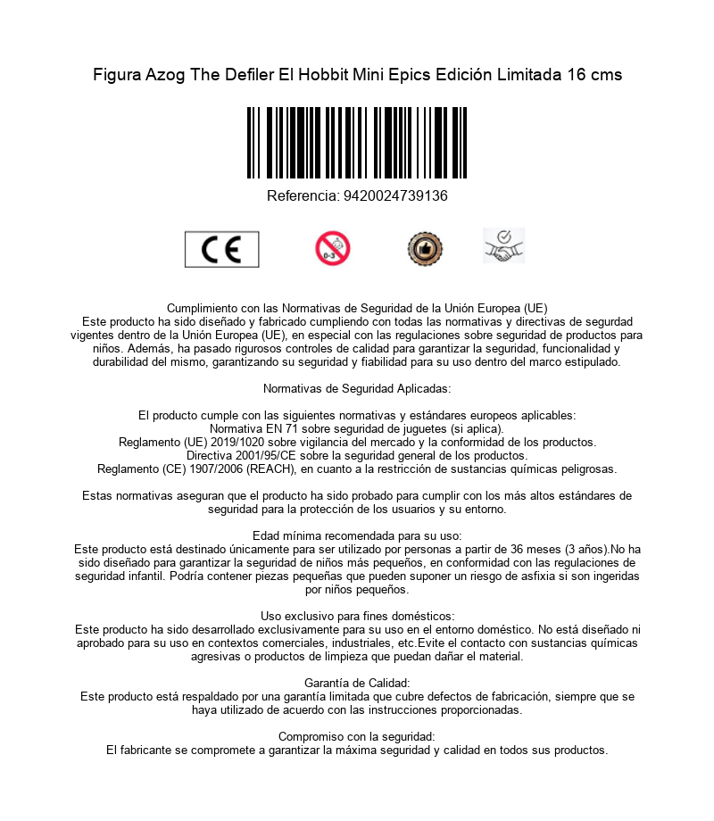 Azog El Profanador, conocido en versión original como Azog The Defiler, es el temible orco que persigue a Bilbo, Gandalf, Thorin y los enanos de la compañía de este último en su expedición hacia la Montaña Solitaria. Jurando venganza contra Thorin, quién le cortó el brazo en la batalla de las puertas de Moria, Azog capitanea incansable a varias hordas de sangrientos orcos siervos de la oscuridad. Weta Workshop, el estudio que está detrás de las criaturas de la saga de “El Hobbit” y “El Señor de los Anillos”, ha creado esa espectacular figura de Azog que está hecha de vinilo y mide unos 16 cms. Es, nada menos, que una edición limitada de 3.000 unidades en todo el mundo. Está diseñada por el artista Mauro Santini y viene en una caja verde brillante con ventana de exposición. Colecciona el resto de figuras de la colección y personajes como Thorin Escudo de Roble, Radagast o el poderoso Smaug cobrarán vida en tu colección. Pertenece a la línea Mini Epics.