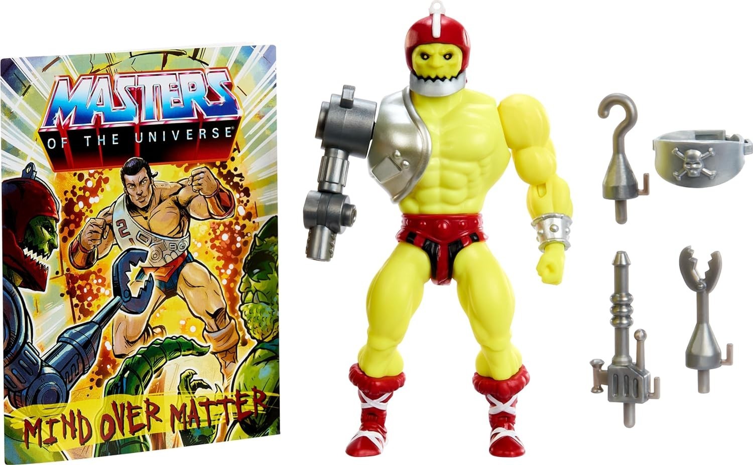 El peligroso Trap Jaw es uno de los personajes más icónicos de la saga de Masters of the Universe. Trap Jaw mide 14 cms, está hecho de PVC e incluye accesorios como dos armas y un cómic en el que podrás leer las aventuras de los personajes que luchan por el planeta Eternia. Disfruta de esta figura de acción articulada que viene dentro de un colorido blíster de la famosa saga de Mattel decorada con ilustraciones.