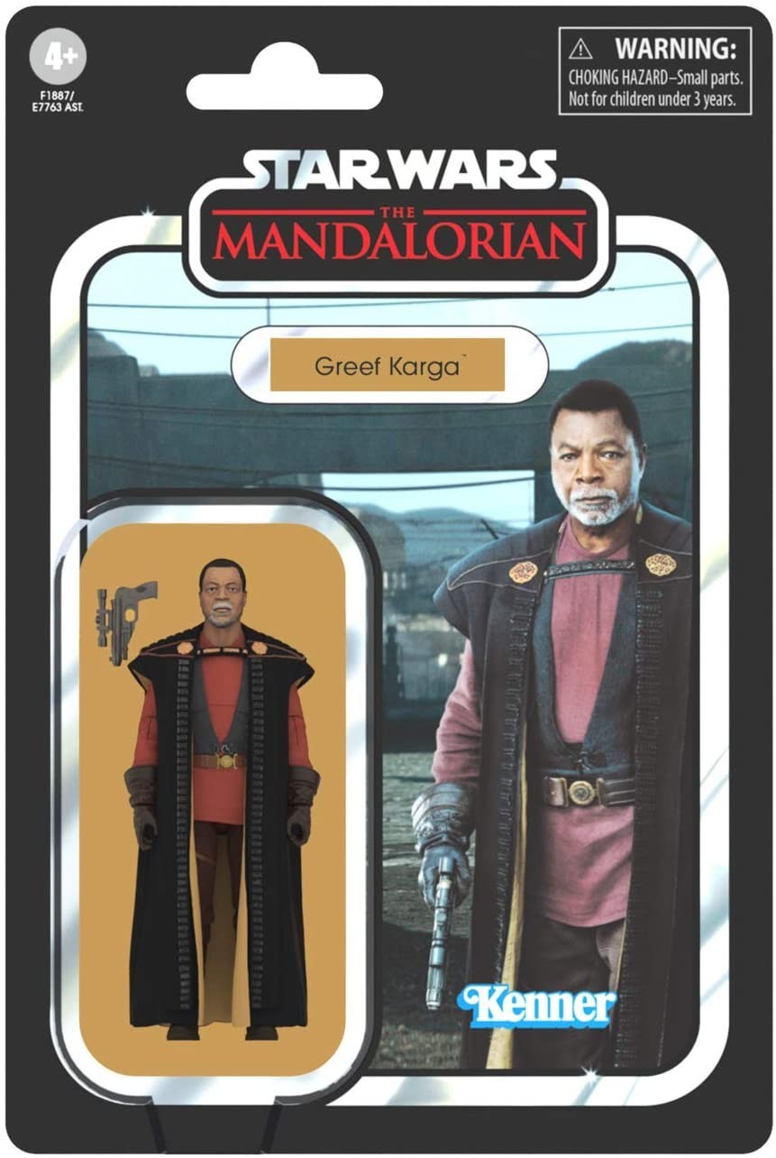 El actor Carl Weathers (mítico Apollo Creed en la saga Rocky) se sumó al universo Star Wars interpretando al cazarrecompensas y líder del gremio Greef Karga en "The Mandalorian". Esta figura articulada de PVC incluye un bláster láser y un trabajo de pintura y escultura que le saca todas las arrugas (por pocas que sean, Carl) al personaje. Viene presentado en el icónico blíster negro que ya es parte indisoluble de las figuras de acción de Star Wars de Kenner y Hasbro.