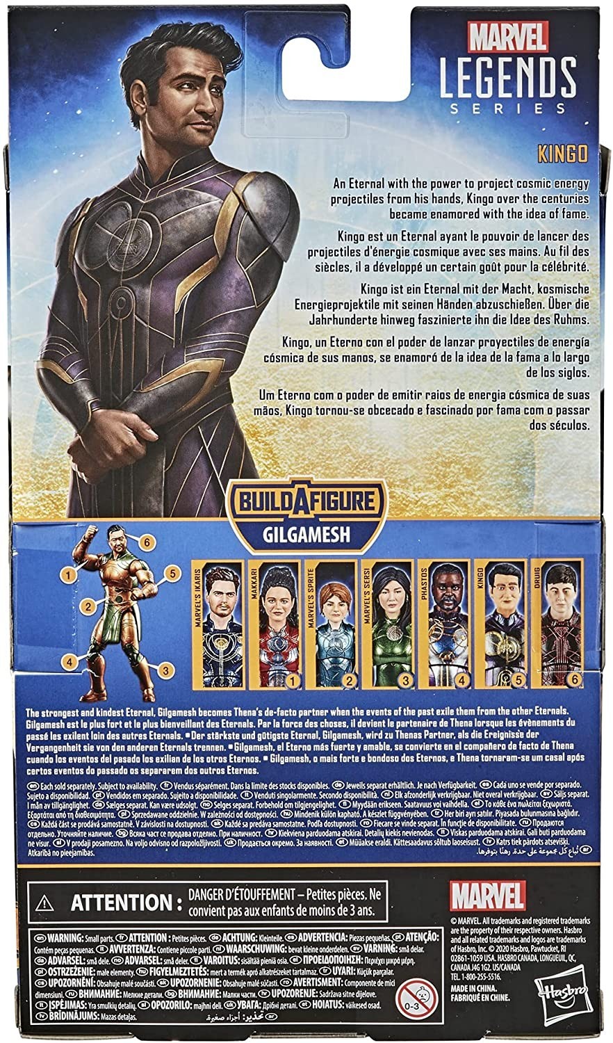 Kingo es uno de los miembros con carácter más ligero de los eternos. Fue interpretado en su versión para la gran pantalla por el actor Kumail Nanjiani, que derrochó carisma en la película "Eternals" de Marvel Studios. Aparte de ser un maestro espadachín, Kingo tiene su excepcional intelecto e inmortalidad para hacer frente a la amenaza de los Deviantes. En esta figura de 15 cms de la línea Marvel Legends, Kingo incluye tres manos intercambiables y una pieza para construir a su compañero Gilgamesh. Este extra de Build A Figure te permite coleccionar todas las piezas que acompañan a los eternos y crear a tu propio eterno Gilgamesh, el enorme especialista en combate cuerpo a cuerpo.