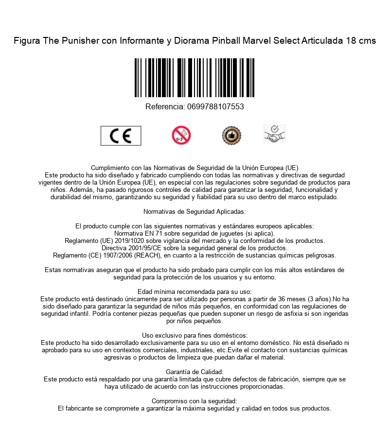 Diamond Select Toys presenta la imprescindible figura de El Castigador de la colección Marvel Select que incluye como complemento una máquina de "pinball" con un informante incrustado en ella después de haber recibido su merecido. También encontrarás en la caja una pieza de diorama del muro del pub con ventana. Ponte la gabardina de cuero, ármate de ganas de justicia y hazte con este Castigador de 18 cms hecho de PVC. Brutal.