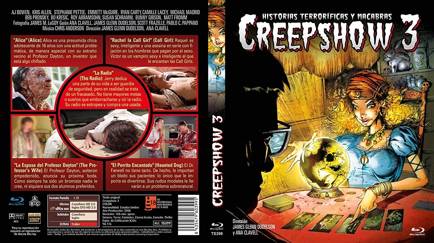 En esta nueva entrega de la saga Creepshow, lanzada directamente al mercado de video y DVD, nos encontramos con cinco historias diferentes: "Alice" (Alice): Alice es una presumida chica de 16 años con una actitud problemática, de manera especial con su extraño vecino el Profesor Dayton, un inventor que está algo chiflado. "Rachel la Call Girl" (Call Girl): Raquel es sexy, inteligente y una asesina en serie con fijación en los hombres que pagan por el sexo. Victor es un vampiro sexy e inteligente al que le encantan las Call Girls. "La Esposa del Profesor Dayton" (The Professor's Wife): El Profesor Dayton, solterón empedernido, anuncia que va a casarse. Como siempre ha sido un bromista nadie se lo cree, incluyendo a sus dos alumnos preferidos, John y Charles. Pero cuando conocen a su prometida Kathy, una rubia perfecta con un acento muy sexy, ya no tienen dudas de que está tomándoles el pelo. "El Perrito Encantado" (Haunted Dog): El Dr. Farwell no tiene tacto. De hecho, le importan un bledo sus pacientes: lo único que le importa es divertirse. Sus modales descuidados le llevan a un problema sobrenatural cuando, inconscientemente, provoca la muerte de un transeúnte, Cliffie, con un perrito caliente contaminado. "La Radio" (The Radio): Jerry dedica una parte de su vida a ser guardia de seguridad, pero en realidad se trata de un fracasado. No tiene mayores metas o sueños que emborracharse y oír partidos por la radio. Cuando su radio se estropea compra una de segunda mano a un vendedor ambulante. Pronto descubre que no es una radio normal y corriente: no sólo puede mantener una conversación con ésta, sino que, además, le explica cómo hacerse rico.