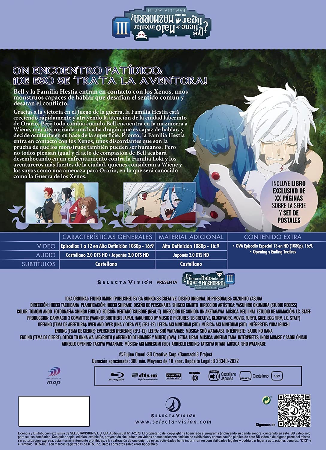 Bell and the Hestia Familia come into contact with the Xenos, monsters capable of speech that defy common sense and spark conflict. Thanks to the victory in the war game, the Hestia Familia is growing rapidly and attracting the attention of the Labyrinth City of Orario. But everything changes when Bell finds Wiene, a terrified dragon girl who is able to speak, in the dungeon and decides to hide her in his surface base. Soon, the Hestia Familia comes into contact with the Xenos, discordants who are proof that monsters can also be human. But not everyone thinks the same and Bell's act of compassion will end up leading to training against the Loki Family and the city's strongest adventurers, who consider Wiene and the Xenos as a threat to Orario. What will be known as the Xenos War.