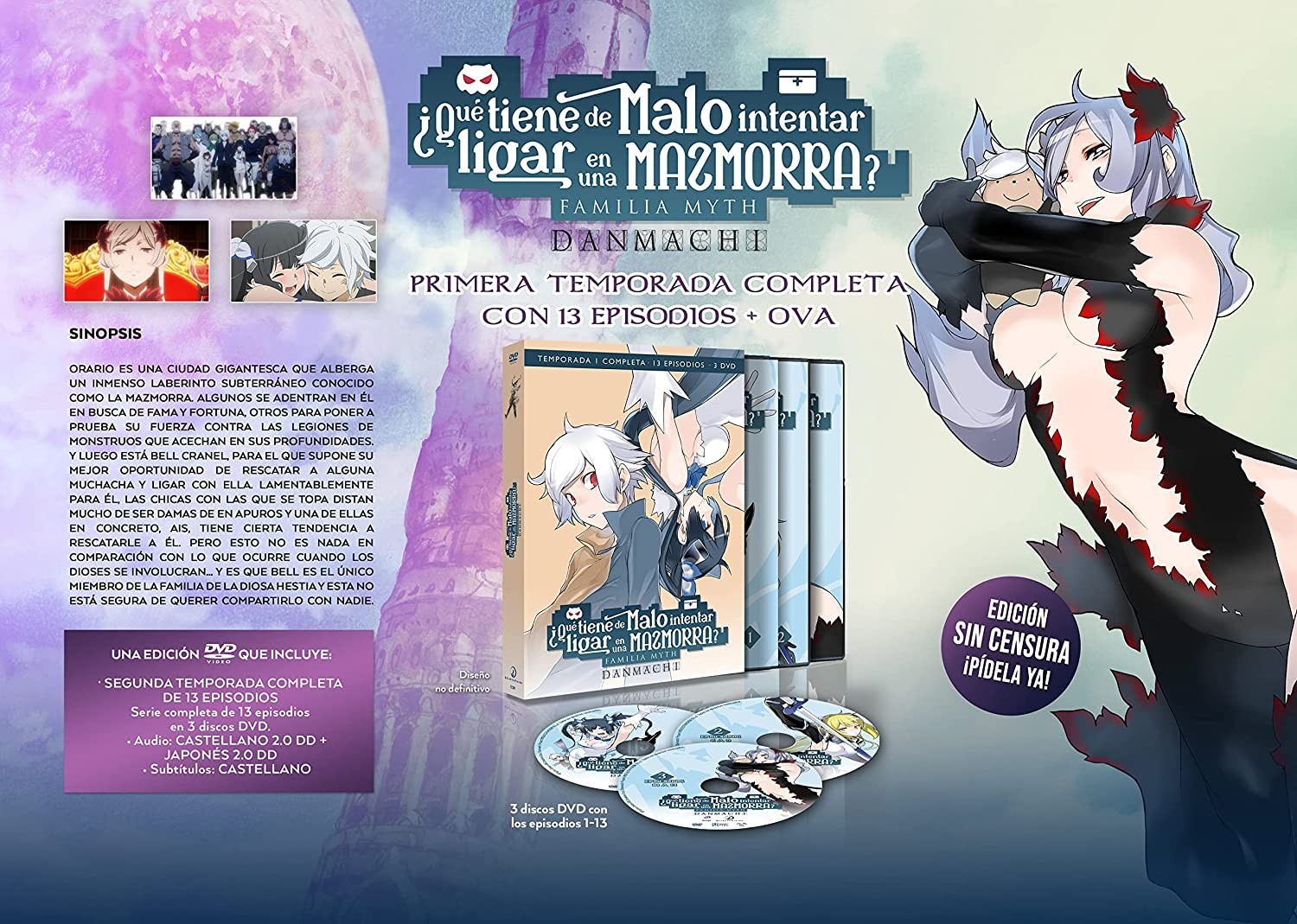Bell Cranel, the only follower of the goddess Hestia, enters the dungeon with the idea of becoming a great hero and impressing the girl of his dreams. Orario is a gigantic city that houses an immense underground labyrinth known as the dungeon. Some enter it in search of fame and fortune, others to test their strength against the legions of monsters that lurk in its depths. And then there is Bell Cranel, for whom it is his best chance to rescue some girl and flirt with her. Unfortunately for him, the girls he encounters are far from being ladies in distress and one of them in particular, Ais, has a tendency to rescue him. But this is nothing compared to what happens when the gods get involved... and Bell is the only member of the goddess Hestia's family and she is not sure she wants to share him with anyone.