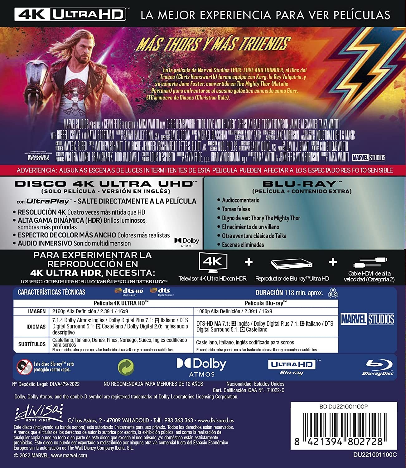 Languages: 7.1.4 Dolby Atmos: English / Dolby Digital Plus 7.1: Italian / DTS Digital Surround 5.1: Spanish / Dolby Digital 2.0: English descriptive audio