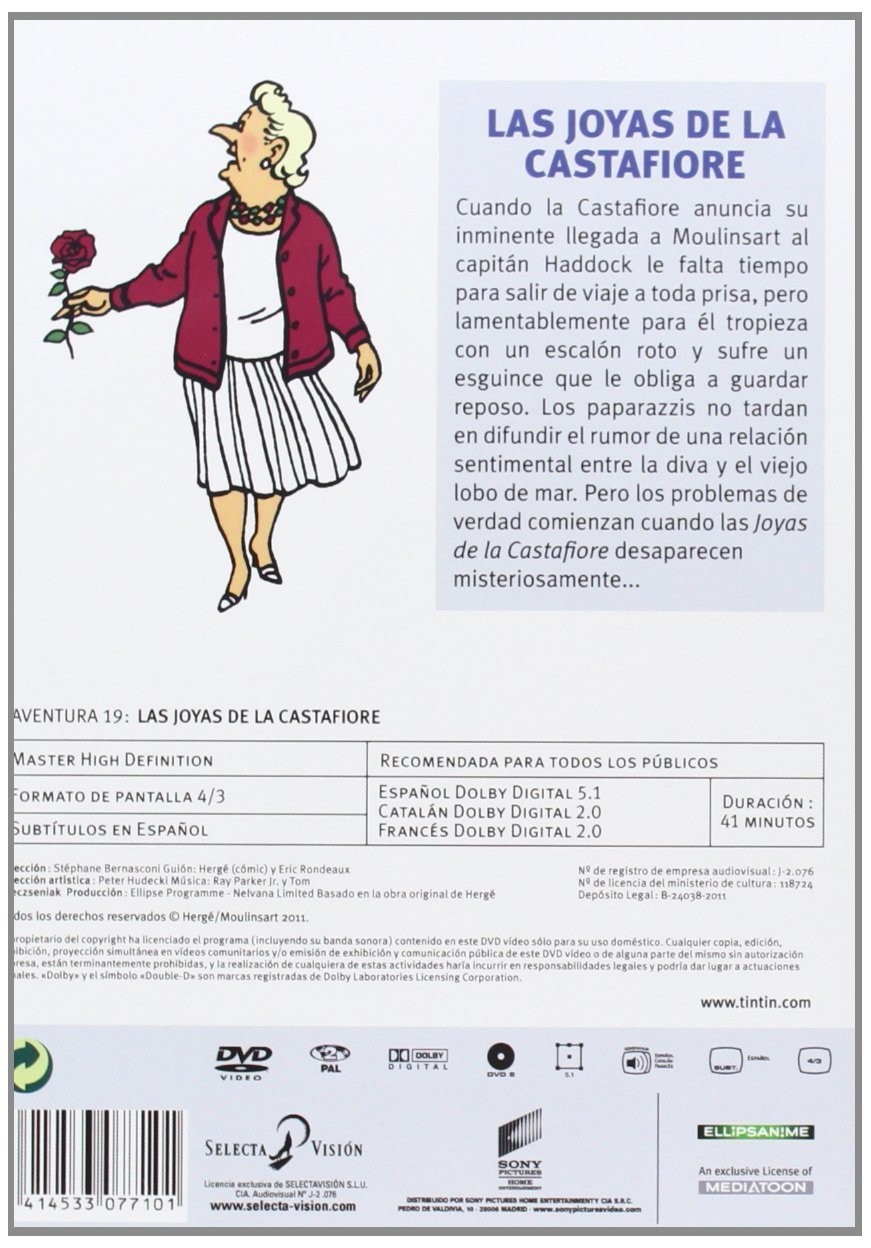 When the Castafiore announces its imminent arrival at Moulinsart, Captain Haddock lacks time to leave in a hurry, but unfortunately for him he trips on a broken step and suffers a sprain that forces him to rest. Things get complicated when the Castafiore jewels mysteriously disappear...