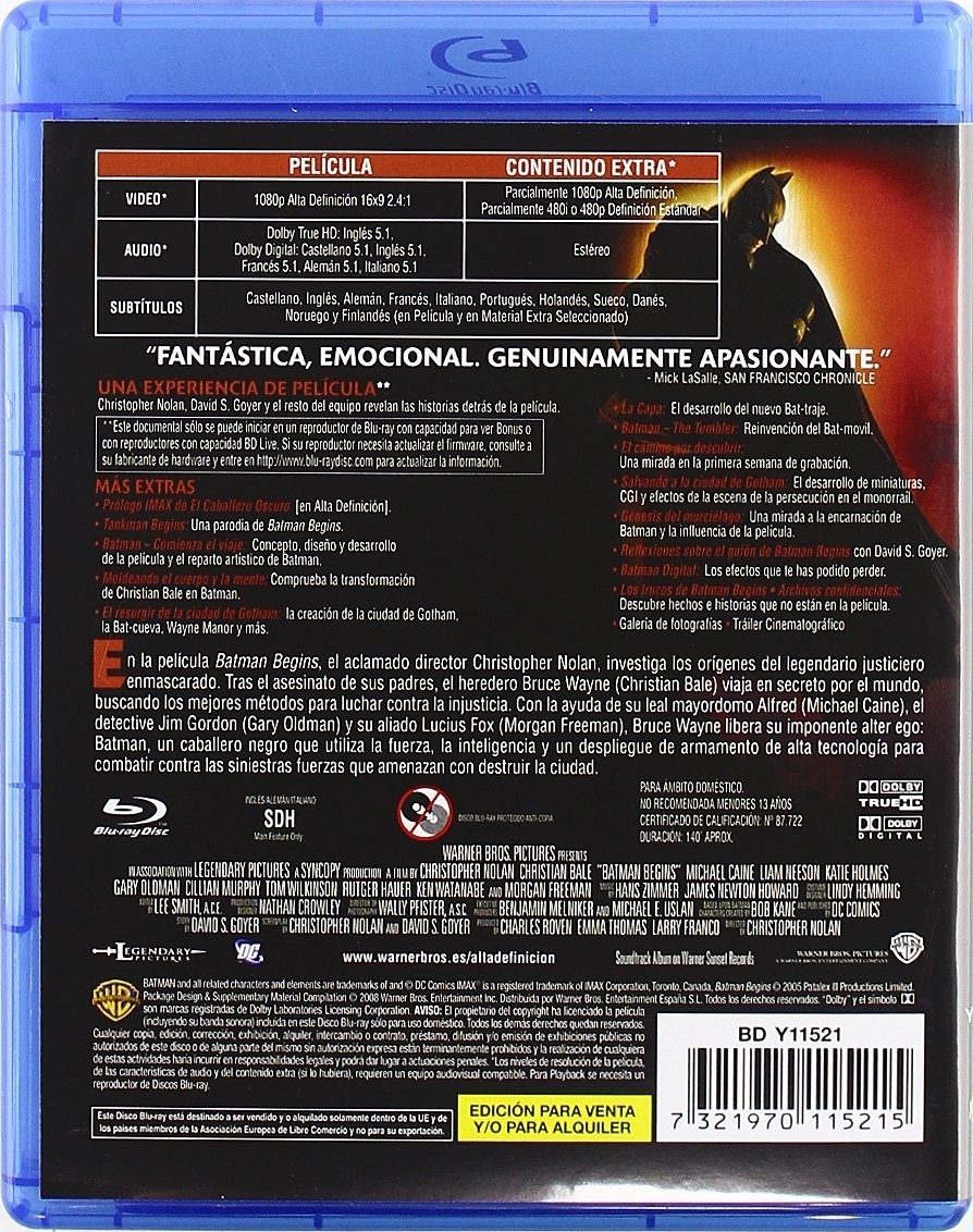 Nueva adaptación del famoso cómic. Narra los orígenes de la leyenda de Batman y los motivos que lo convirtieron en el representante del Bien en la ciudad de Gotham. Bruce Wayne vive obsesionado con el recuerdo de sus...