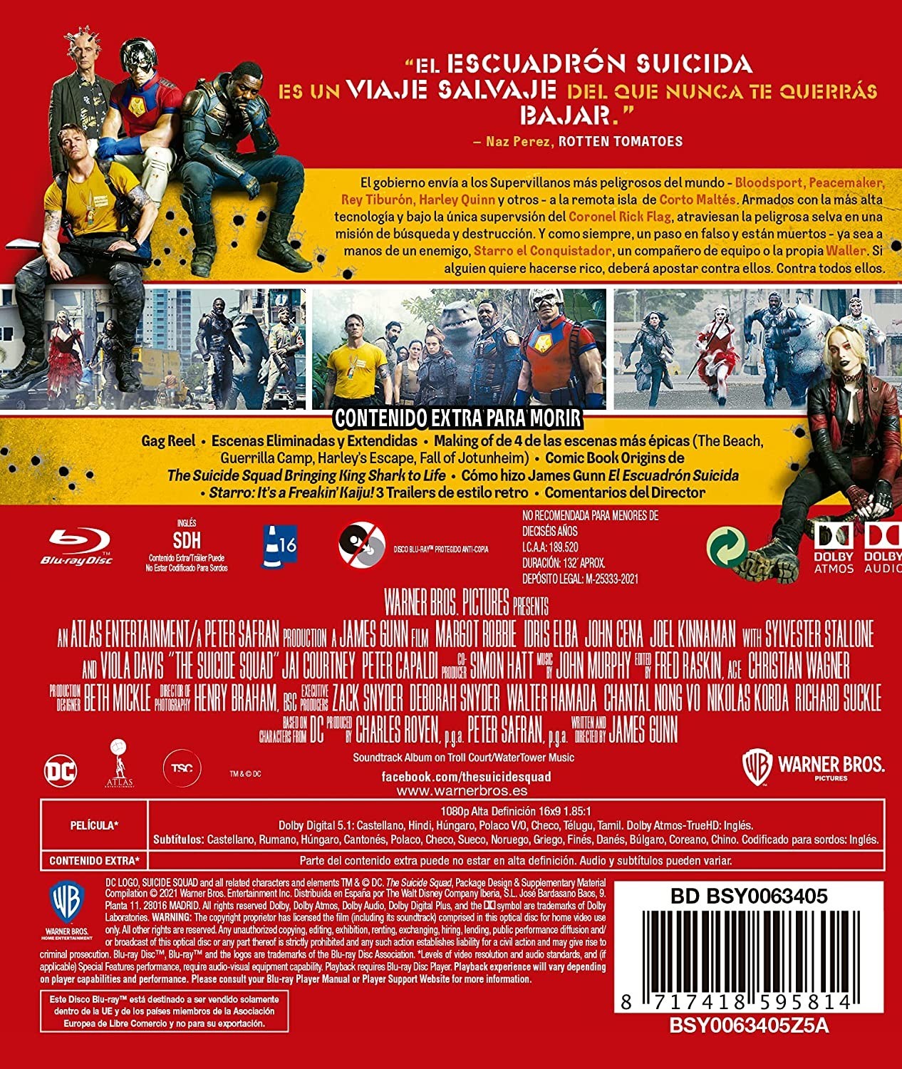 Gag Reel Deleted and Extended Scenes Making of 4 of the most epic scenes (The Beach, Guerrilla Camp, Harley's Escape, Fall of Jotunheim) Comic Book Origins of The Suicide SquadBringing King Shark to Life How James Gunn Made El Escuadrón Suicida Starro: It's to Freakin' Kaiju! 3 Retro-Style Trailers Director's Comments