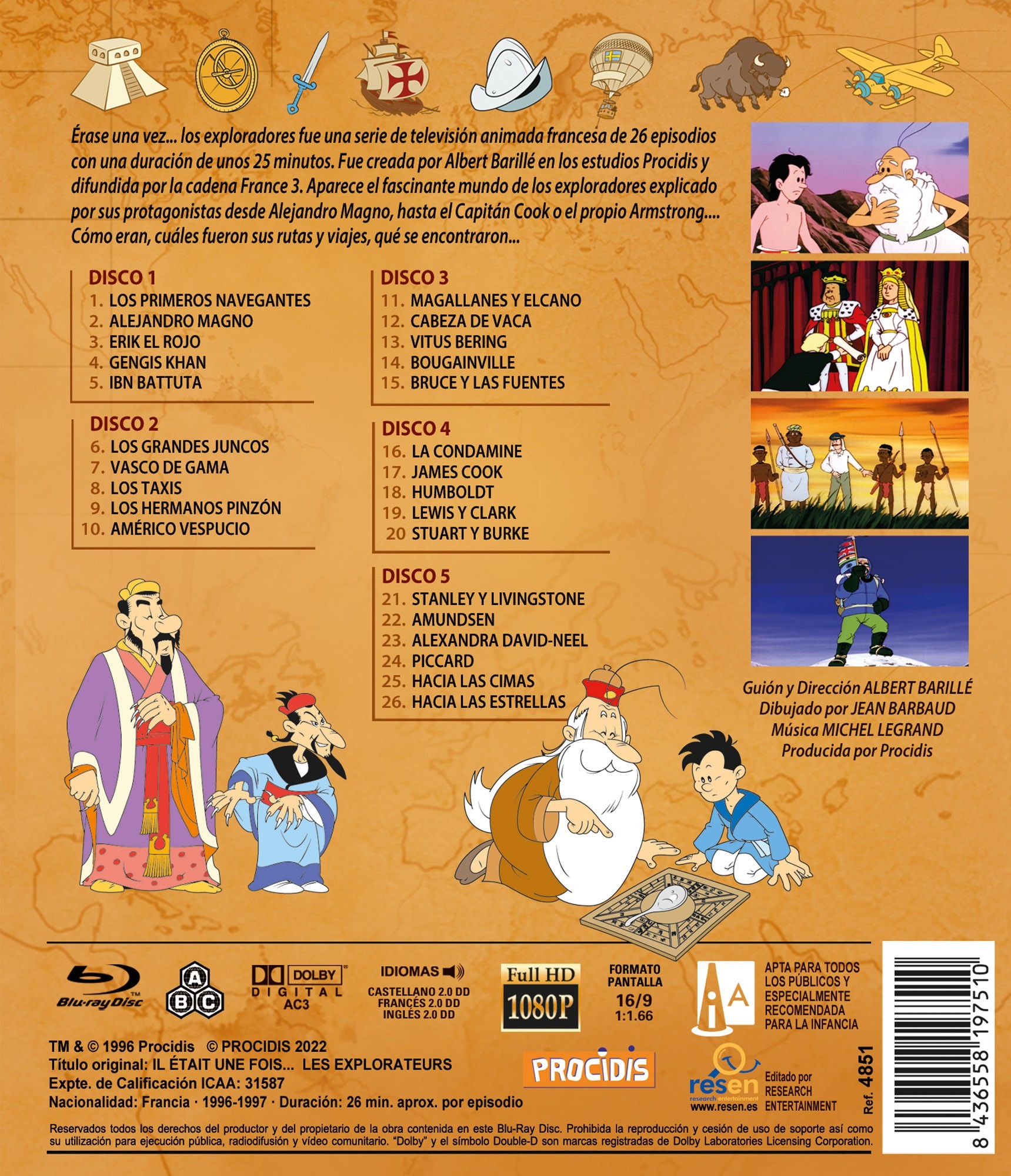 Once Upon a Time...The Explorers was a French animated television series of 26 episodes with a runtime of about 25 minutes. It was created by Albert Barillé at the Procidis studios and broadcast on the France 3 channel from October 9, 1996. The fascinating world of explorers appears, explained by its protagonists, from Alexander the Great, to Captain Cook and Armstrong himself. .. what they were like, what were their routes and trips, what they found... are some of the unknowns that can be clarified, explained in simple language by the characters of the series: the maestro, pedrito, kira, among others.