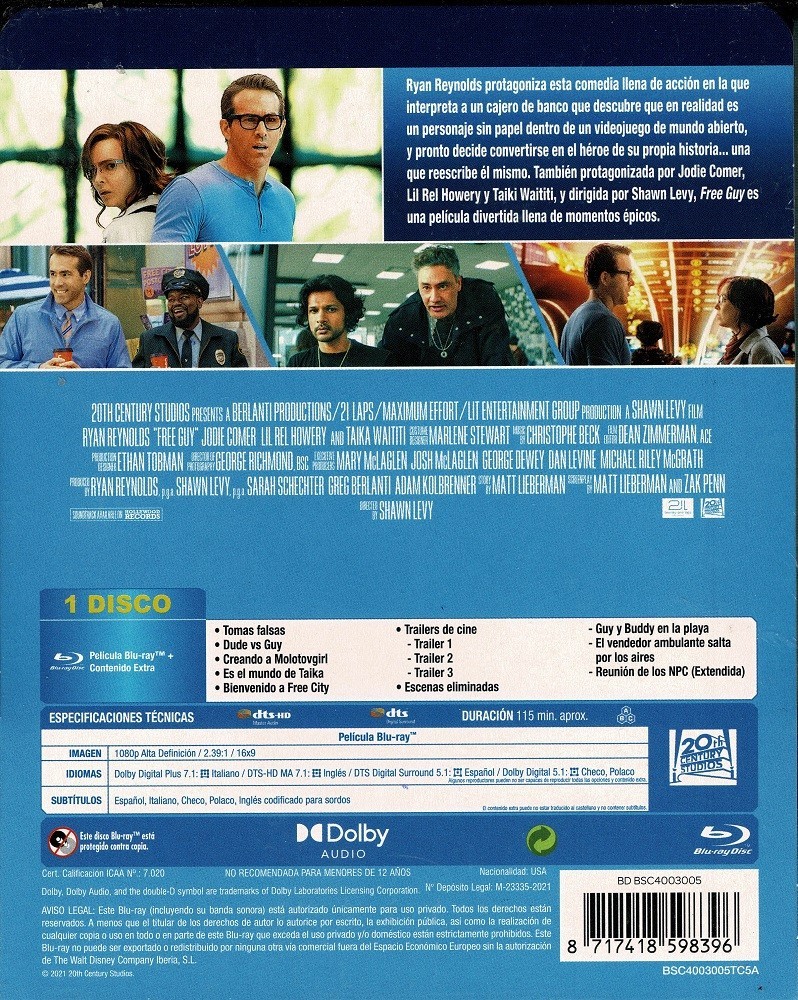 Ryan Reynolds stars in this action-packed comedy in which he plays a bank teller who discovers that he is actually a character in an open-world video game, and soon decides to become the hero of his own story... which he rewrites himself. Also starring Jodie Comer, Lil Rel Howery and Taiki Waititi, and directed by Shawn Levy, Free Guy is a fun movie full of epic moments.