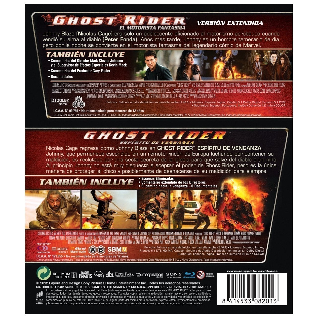 Adaptación del famoso cómic de la Marvel. Hace mucho tiempo, la superestrella de las acrobacias en moto, Johnny Blaze (Nicolas Cage) hizo un trato con el diablo para proteger a los que más quería: su padre y su novia de la juventud, Roxanne (Eva Mendes). Ahora, el diablo ha venido a cobrar su deuda. De día, Johnny es un motero acróbata temerario... pero de noche, en presencia del diablo, se convierte en Ghost Rider, un cazarrecompensas de demonios deshonestos. Obligado a hacer la voluntad del diablo, Johnny está decidido a enfrentarse a su destino y utilizar su maldición y sus poderes para defender al inocente... ,Con el fin de controlar sus deseos de venganza, Johnny Blaze (Nicolas Cage), que ve sus poderes como una maldición, vive apartado del mundo y sin relacionarse con nadie. Sin embargo, acaba siendo localizado por el monje Moreau, que necesita su ayuda para buscar a Nadya y a su hijo Danny antes de que los encuentre Roarke, un viejo conocido de Blaze.