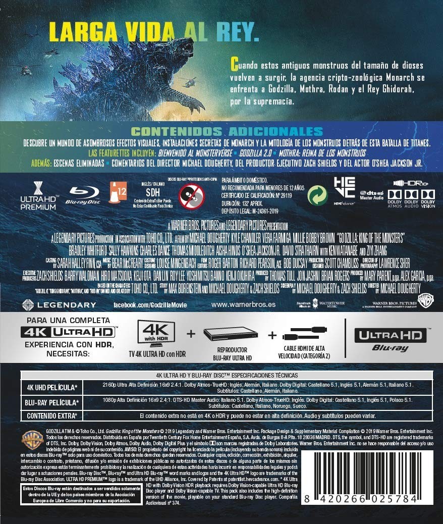"Following the worldwide success of "Godzilla" and "Kong: Skull Island," comes "Godzilla: King of the Monstruos ," the next installment in the MonsterVerse film franchise from Warner Bros. Pictures and Legendary Pictures. An epic action adventure that pits Godzilla against some of the most popular monsters in popular culture, the new story follows the heroic efforts of the crypto-zoological agency Monarch as its members take on a battery of monsters from the size of gods, among which are the powerful Godzilla, who clashes with Mothra, Rodan and his greatest enemy, Ghidorah, the three-headed king. When these ancient super species - which were believed to be just myths - re-emerge, they all They fight for supremacy, leaving humanity's existence on the brink of the abyss."