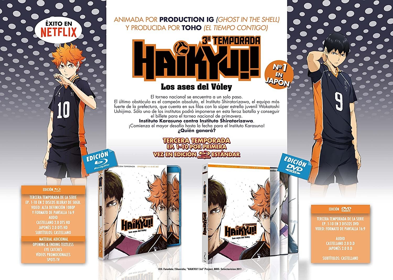 The Karasuno Institute, which finally reaches the decisive phase, the final that will decide who will be the representative of Miyagi Prefecture in the national volleyball tournament. After being narrowly defeated against Aoba Josai Institute in the semi-finals of the qualifiers for the national inter-school tournament, Karasuno participates in a training camp with the strongest teams in Kanto with the aim of improving their level. for the spring national tournament. Despite being aware of the distance that separates them from national teams such as Fukurodani, Ubugawa or Shinzen, the Karasuno team decides to focus solely on its own evolution. Finally, the qualifying phase for the spring national tournament begins. Karasuno makes his way through powerful teams as Hinata and Kageyama's combined quick attack continues to evolve, the individual pieces fall into place and the entire team works. And so, in the decisive semi-finals of Miyagi Prefecture they meet again with their arch-enemies from Aoba Josai. Faced with stubborn rivals who do not give up a single step, the match ends up turning into an all-out war. Finally, when only their pride remains, it is the Karasuno that controls the fierce battle beyond the limits of physical strength. The national tournament is just one step away. The last obstacle is the absolute champion, the Shiratorizawa Institute, the strongest team in the prefecture, which has youth superstar Wakatoshi Ushijima in its ranks. Only one of the institutes will be able to prevail in this fierce battle and get a ticket to the spring national tournament. Karasuno Institute vs. Shiratorizawa Institute. The biggest challenge yet for Karasuno Institute begins! Who will win?