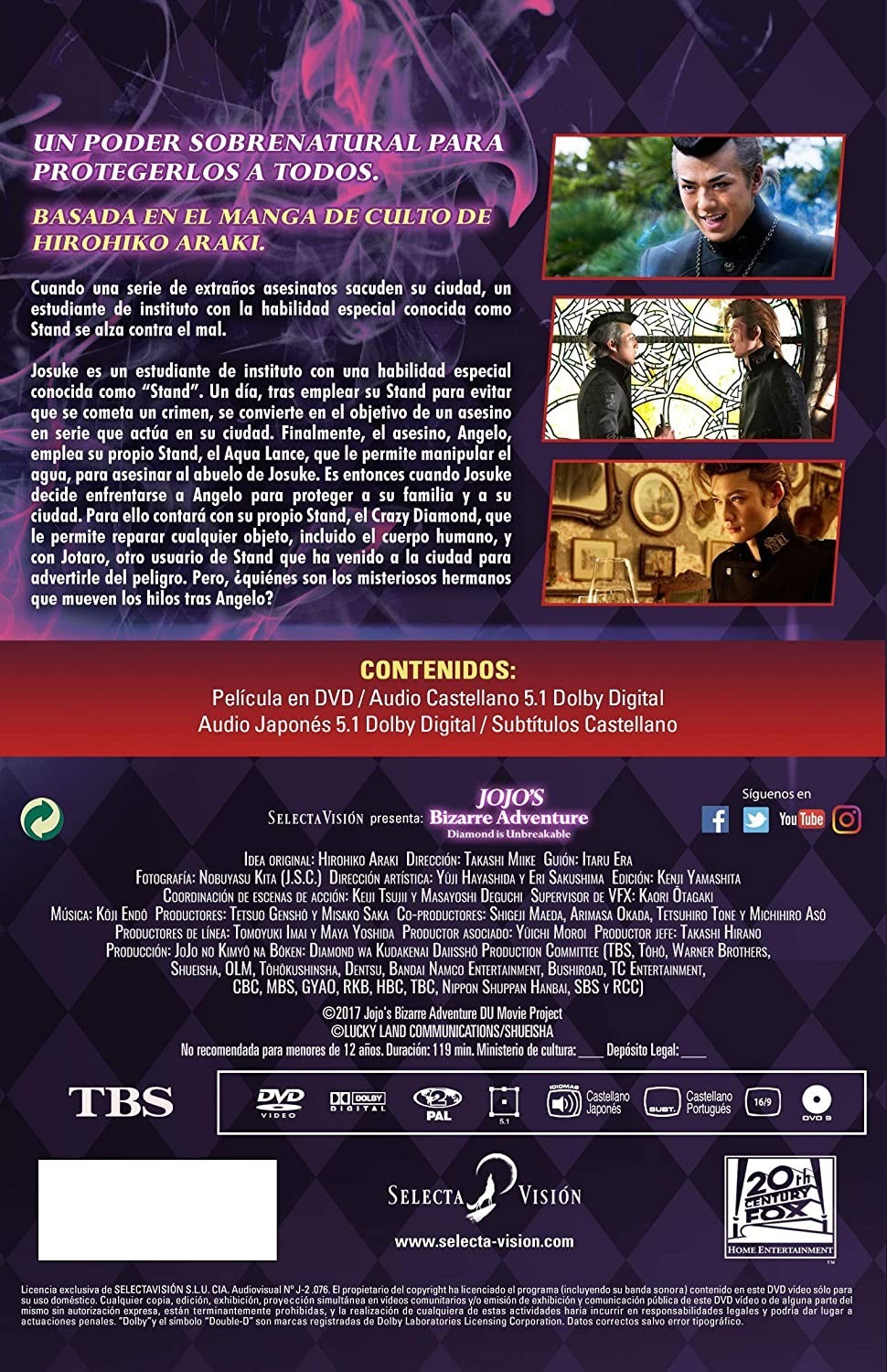 When a series of strange murders rock his city, a high school student with the special ability known as Stand stands up against evil. Josuke is a high school student with a special ability known as "Stand". One day, after using his Stand to prevent a crime from being committed, he becomes the target of a serial killer operating in his city. Finally, the assassin, Angelo, uses his own Stand, the Aqua Lance, which allows him to manipulate water, to murder Josuke's grandfather. It is then that Josuke decides to confront Angelo to protect his family and his city. To do this, he will have his own Stand, the Crazy Diamond , which allows him to repair any object, including the human body, and with Jotaro, another Stand user who has come to the city to warn him of the danger. But who are the mysterious brothers pulling the strings behind Angelo?"