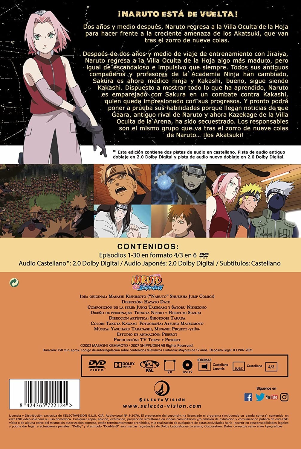 Naruto is back! Two and a half years later, Naruto returns to the Hidden Leaf Village to face the growing threat of the Akatsuki, who are after the nine-tailed fox. After two and a half years of training trip with Jiraiya, Naruto returns to the Hidden Leaf Village somewhat more mature, but just as loud and impulsive as always. All of her former classmates and teachers at the Ninja Academy have changed, Sakura is now a medical ninja and Kakashi, well, is still Kakashi. Willing to show off everything he has learned, Naruto is paired with Sakura in a fight against Kakashi, who is impressed with his progress. And soon he will be able to put his skills to the test because news arrives that Gaara, Naruto 's former rival and now the Kazekage of the Hidden Sand Village, has been kidnapped. Those responsible are the same group that goes after Naruto 's nine-tailed fox... the Akatsuki!