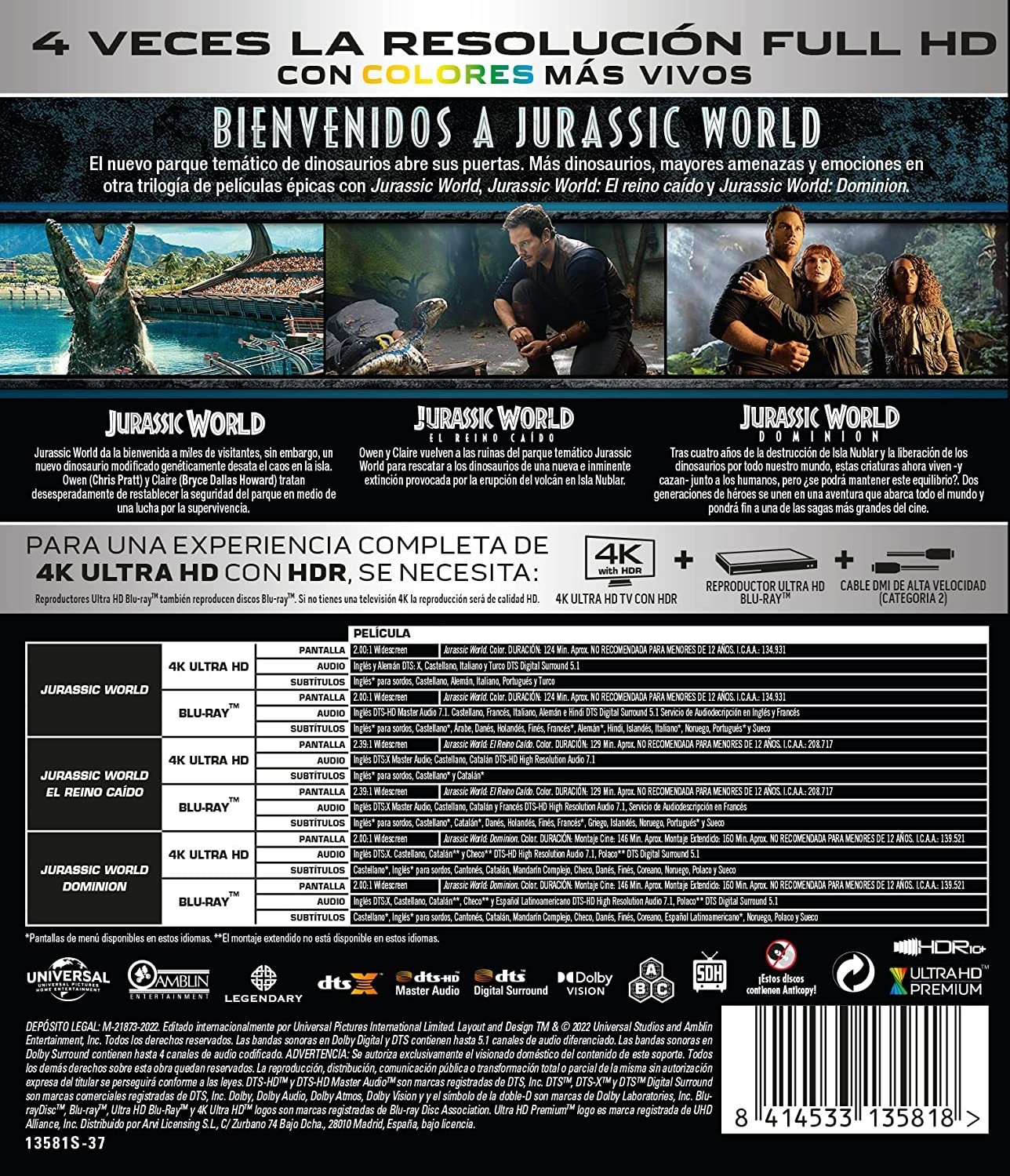 The new dinosaur theme park opens its doors. More dinosaurs, bigger threats and thrills in another epic movie trilogy with Jurassic World , Jurassic World : Fallen Kingdom and Jurassic World : Dominion.