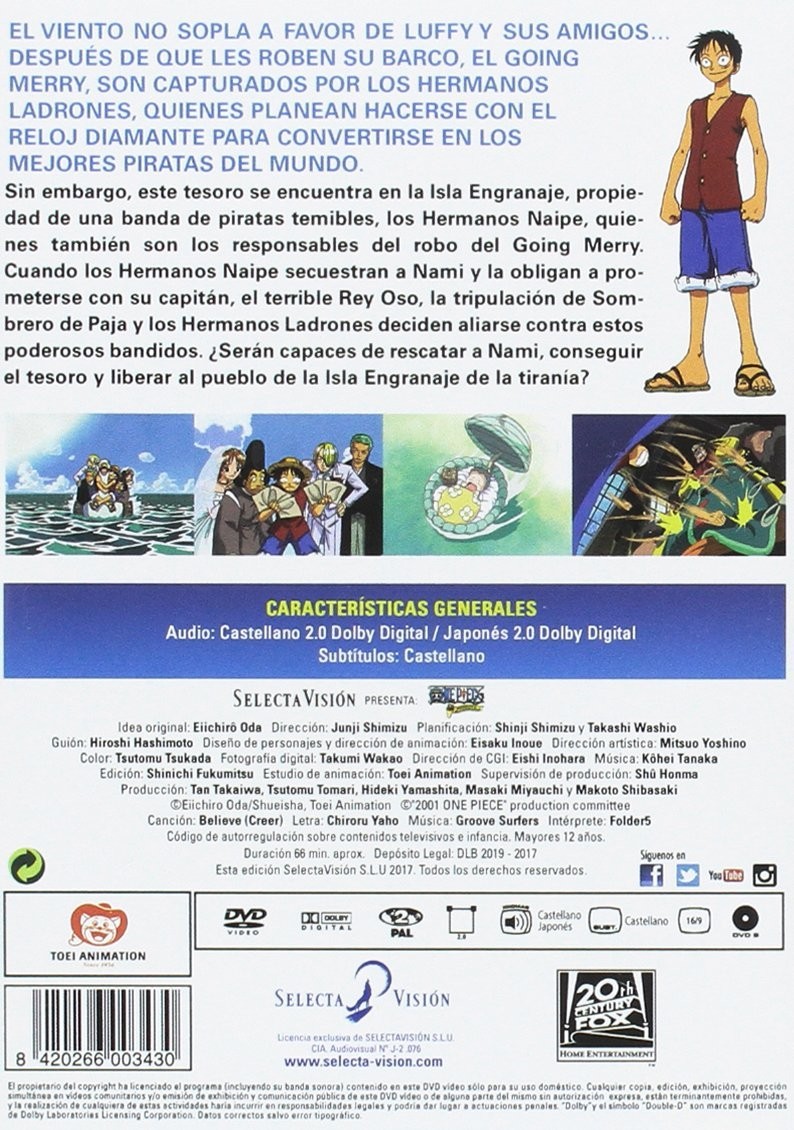 The wind is not blowing in favor of Luffy and his friends... After their ship, the Going Merry, is stolen, they are captured by the thief brothers, who plan to take the diamond watch to become the best pirates in the world. However, this treasure is located on Clock Island, owned by a band of fearsome pirates, the Trump brothers, who are also responsible for the theft of the Going Merry. When the Trump brothers kidnap Nami and force her to get engaged to their captain, the terrible Bear King, the Straw Hat crew and the thief brothers decide to ally against these powerful bandits. Will they be able to rescue Nami, get the treasure and free the people of the clock island of tyranny?