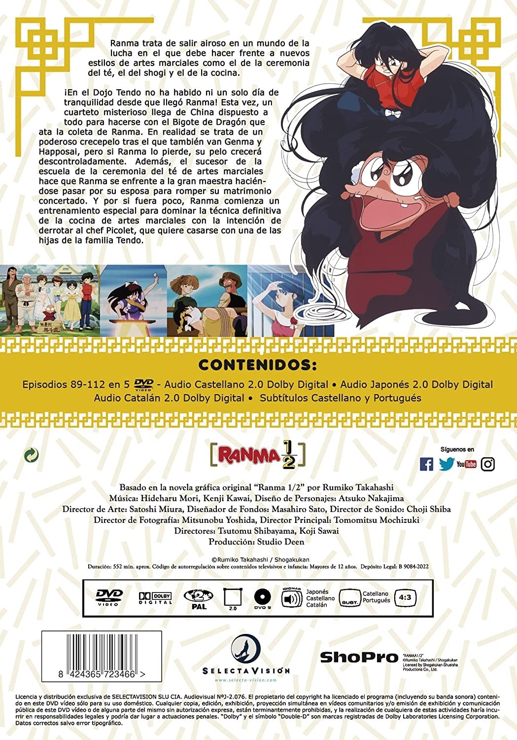 Ranma tries to prevail in an expanding world of fighting with the emergence of the martial arts styles of tea ceremony, shogi and cooking. Since Ranma arrived, the Tendo Dojo has gone crazy! This time, a mysterious quartet arrives from China ready to do anything to get the Dragon Whisker that ties Ranma's ponytail. In reality it is a powerful hair grower that Genma and Happosai are also after, but if Ranma loses it his hair will grow uncontrollably. Additionally, the successor to the martial arts tea ceremony school has Ranma confront the grandmaster by posing as his wife to break up their arranged marriage. And if that were not enough, Ranma begins special training to master the ultimate technique of martial arts cooking with the intention of defeating Chef Picolet, who wants to marry one of the daughters of the Tendo family.