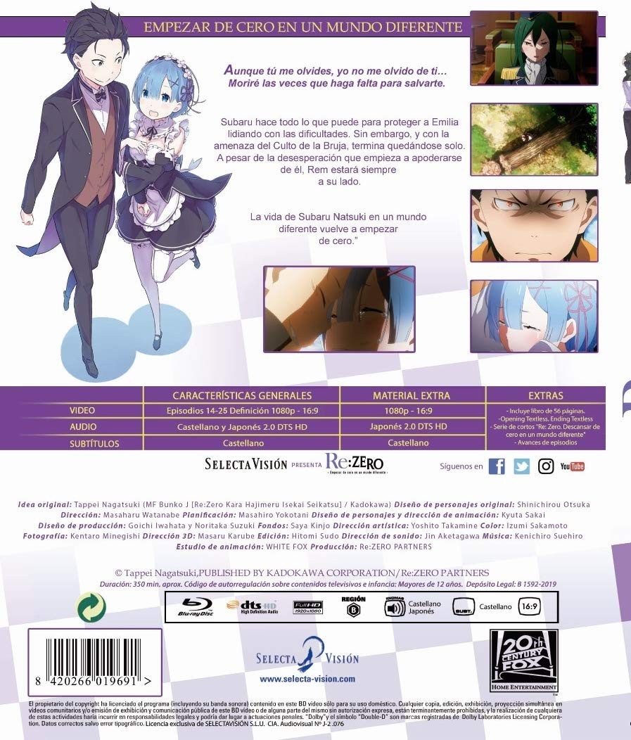 Even if you forget me, I will not forget you... I will die as many times as necessary to save you. On the way home from a convenience store, young Subaru Natsuki finds himself suddenly transported to another world. Lost and confused in a new world where nothing seems to make sense, Subaru is rescued by a beautiful young woman with silver hair. In order to return the favor, Subaru agrees to help her find something she's looking for. But the only power that the defenseless young man has is that of “return by death”, which consists of every time he dies, time is rewinded to the moment of his arrival into this world. Determined to protect the people he cares about and recover the irreplaceable time that has been taken from him, Subaru resists despair and decides to face his harsh destiny.