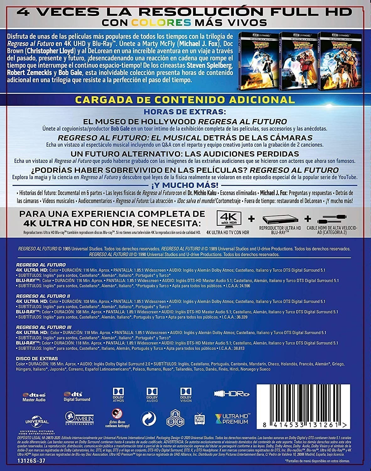El adolescente Marty McFly es amigo de Doc, un científico al que todos toman por loco. Cuando Doc crea una máquina para viajar en el tiempo, un error fortuito hace que Marty llegue a 1955, año en el que sus futuros padres aún no se habían conocido. Después de impedir su primer encuentro, deberá conseguir que se conozcan y se casen; de lo contrario, su existencia no sería posible. ,Aunque a Marty McFly todavía le falta tiempo para asimilar el hecho de estar viviendo dentro de la familia perfecta gracias a su anterior viaje en el tiempo, no le queda ni espacio para respirar cuando su amigo Doc aparece de improviso con la máquina del tiempo (mucho más modernizada), e insta a que le acompañen él y su novia a viajar al futuro para solucionar un problema con la ley que tendrá uno de sus futuros hijos. En la tremenda vorágine futurista, con todo lo que ello conlleva, del Hill Valley de 2015, la presencia de tales viajeros temporales causará un efecto mayor que el que iban a arreglar. Un almanaque deportivo y la posesión del secreto de la existencia de la máquina del tiempo por parte del siempre villano Biff Tannen, serán los ingredientes que conjugarán una causa-efecto en el pasado, en el presente y en el propio futuro, que hará que Marty y Doc se tengan que emplear a fondo para poner fin a la catástrofe a la que les lleva el destino. ,Marty McFly sigue en 1955 y su amigo Doc ha retrocedido al año 1885, la época del salvaje oeste. Éste le envía una carta donde comenta que la máquina del tiempo está averiada, y que es imposible repararla. Sin embargo no le preocupa estar atrapado en el pasado, pues allí es muy feliz trabajando de herrero aunque convive con malhechores. Pero Marty descubre una vieja tumba en la que lee que Doc murió en 1885 y, sin pensárselo dos veces, irá a rescatar a su amigo.