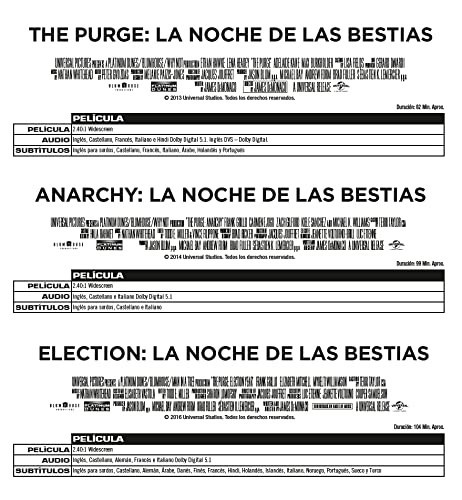 Welcome to The Purge: a terrifying future where all crime is legal for one night a year. What begins as a controversial social experiment has become a deadly annual event in which anarchists seek out people to execute while ordinary citizens fight to survive. From home invasions to wild streets erupting with The Purge, the thrillers in this 5-film collection chronicle a dystopian America torn between murderous chaos and a resistance movement determined to take back the country.