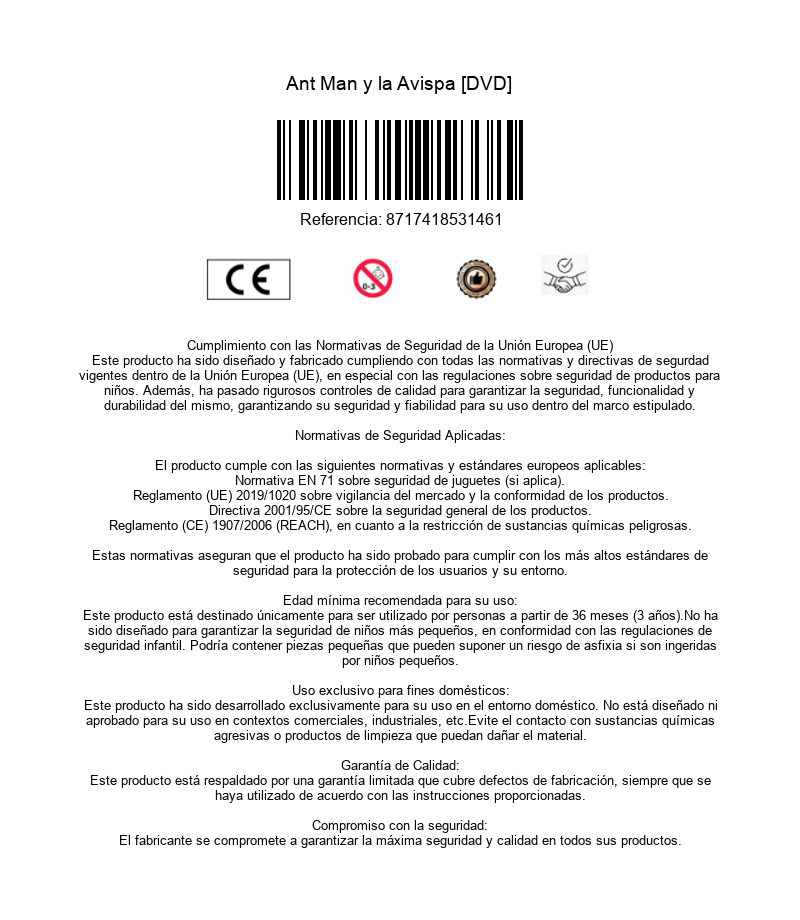 Product description ANT-MAN AND LA WASP ADDITIONAL FEATURES Audio commentary (01h 53min) (Audio: English) (Subtitles: Spanish, English coded for the deaf, Italian). Play Movie With Audio Commentary By Director Peyton...