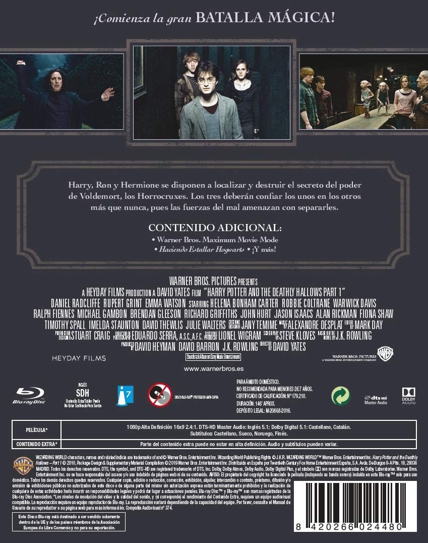 Primera parte de la adaptación al cine del último libro de la saga Harry Potter. Es una continuación de la historia recogida en "El misterio del príncipe". Una misión casi imposible cae sobre los hombros de Harry: deberá encontrar y destruir a los últimos horrocruxes para poner fin al reinado de Lord Voldemort. En el episodio final de la saga, el joven hechicero de 17 años emprende con sus amigos Hermione Granger y Ron Weasley un peligroso viaje por Inglaterra para encontrar los objetos que contienen los fragmentos del alma del Señor Tenebroso, que son los que garantizan su longevidad. Pero la tarea no será fácil, pues el poder del lado oscuro crece cada vez más, y las más firmes lealtades serán puestas a prueba. Harry deberá usar todos los conocimientos que ha adquirido gracias a Dumbledore para enfrentarse a su enemigo y encontrar la forma de sobrevivir a esta última aventura.