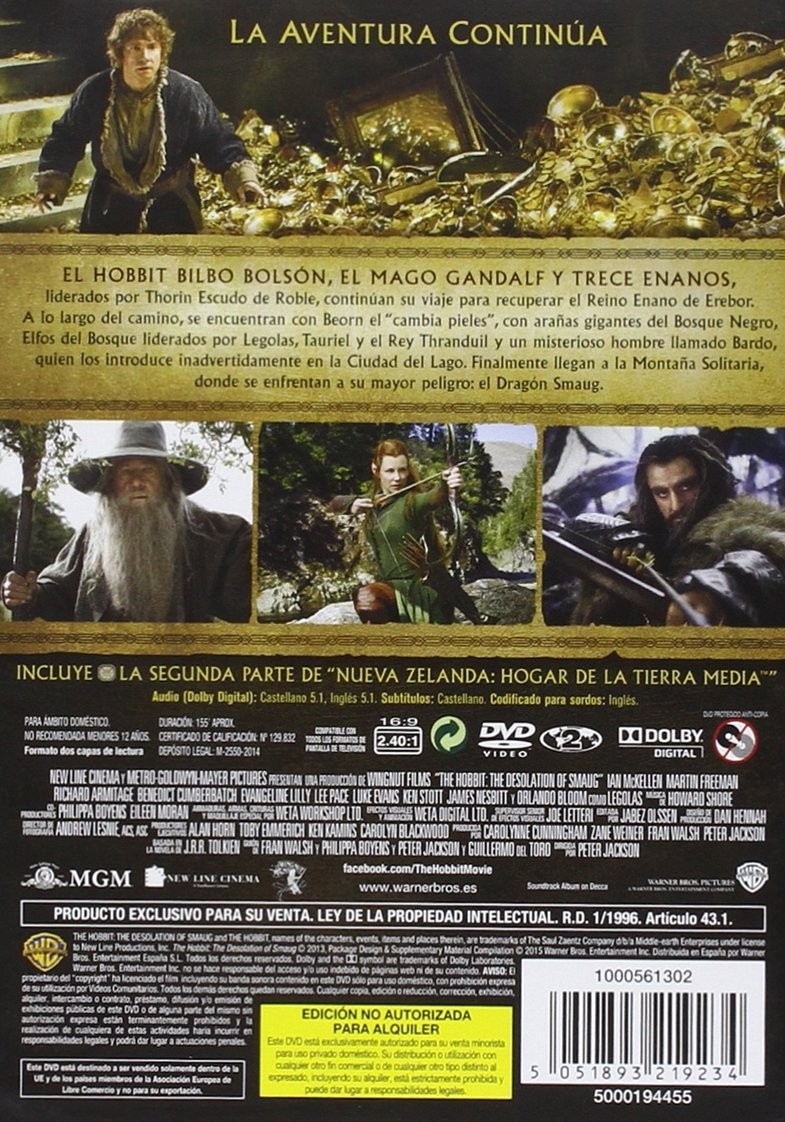Product Description Peter Jackson invites you to the set, Production Videos, New Zealand: Home of Middle-earth - part 2 Synopsis """ El Hobbit : The Desolation of Smaug"" continues the adventure of Bilbo Baggins on...
