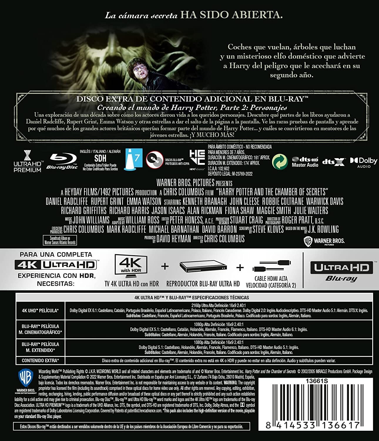 Harry Potter y la Cámara Secreta [4K UHD,Blu-ray] (2002) Harry Potter And The Chamber Of Secrets