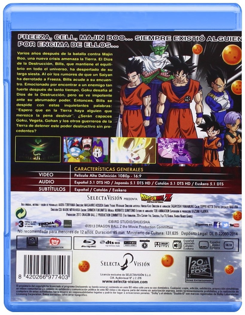 After a few years of the fierce battle against Majin Buu, which determined the fate of space, another crisis is about to once again disturb the peace of the Earth... "As long as there is a God who creates stars in this world, there will be a God destroy them..." Beerus, the God of Destruction, who keeps the universe in balance, wakes up after a long sleep. Beerus, who is in charge of destroying everything completely when there is nothing to get in the way, woke up. This terrifies not only Kaio, but also Kaioshin. Beerus and Whis, who come to Goku in Kaiouhoshi because they had heard rumors that the Saiyans had destroyed Frieza. After the appearance of his powerful enemies, Goku gets excited and challenges them to fight, although he can't do anything against the super powers and loses. Beerus leaves Earth with these chilling words, "I wish there was someone on Earth worth destroying." This threat surprises Earth's warriors like Vegeta and Goku... Can they stop the God of Destruction? Who could be the "Legendary Warrior" that Beerus longs to find...? History is about to cambiar.Audio : Japanese dts hd 2.0, Spanish dts hd 2.0, Catalan dts hd 2.0, Basque dts hd 2.0, Galician dts hd 2.0.