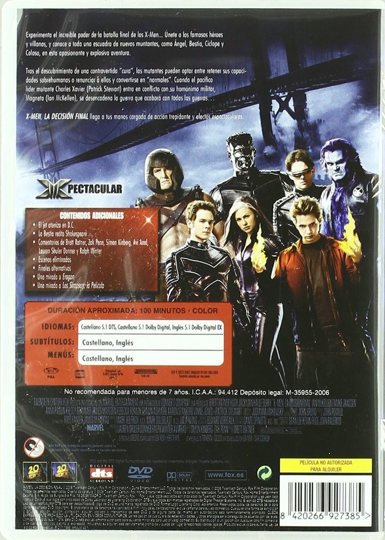 In the story of this latest installment there is a cure for mutants. For the first time they will be able to choose: continue with their uniqueness, even if this isolates and separates them, or give up their powers and become normal human beings. The opposing views of the mutant leaders, Charles Xavier who advocates tolerance and Magneto, who believes in the survival of the fittest, are put to the ultimate test: unleashing the war that will end all wars. .